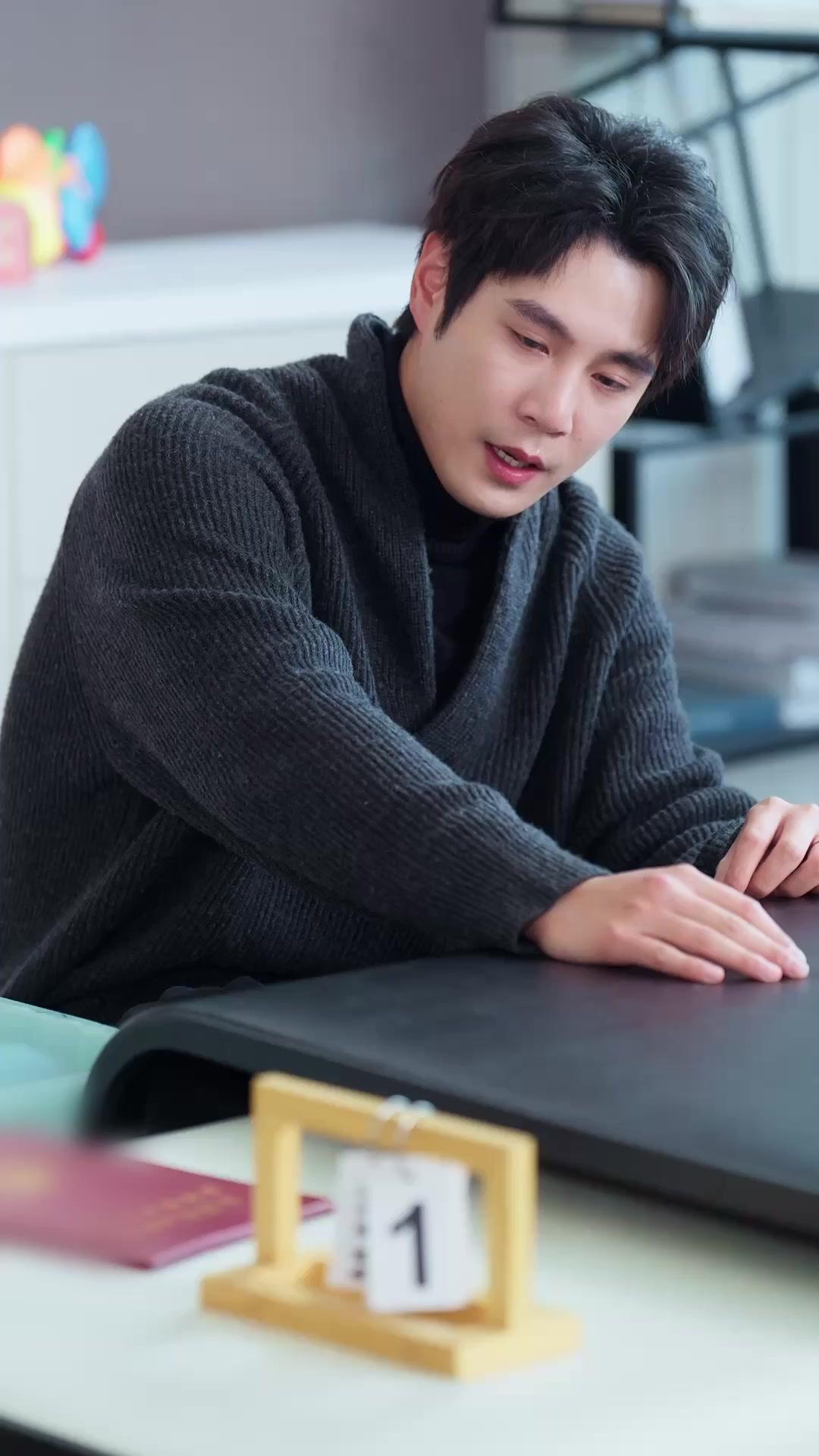 In a sequence that feels less like scripted drama and more like a stolen moment from real life, the tension in the modern apartment doesn’t come from shouting or slamming doors—but from the unbearable weight of unspoken words. Li Wei, dressed in that oversized charcoal knit sweater over a black turtleneck, begins the scene slumped at the table, fingers resting on the edge of a sleek black desk. A wooden calendar block—number 1—sits beside a red passport, its presence almost mocking in its simplicity. He’s not reading, not writing; he’s waiting. And when he finally rises, it’s with the slow, deliberate motion of someone bracing for impact. His posture shifts from resignation to guarded alertness as he walks toward the entrance, where Zhang Lin stands—impeccable in maroon silk blouse and floral skirt, pearl belt gleaming under the golden chandelier’s glow. Her earrings catch the light like tiny warning beacons. She doesn’t move much, but her eyes do everything: they flicker between Li Wei, the man in the pinstripe suit holding a clipboard (a property agent? a lawyer?), and the door behind them—the threshold of escape or entrapment, depending on who you ask.