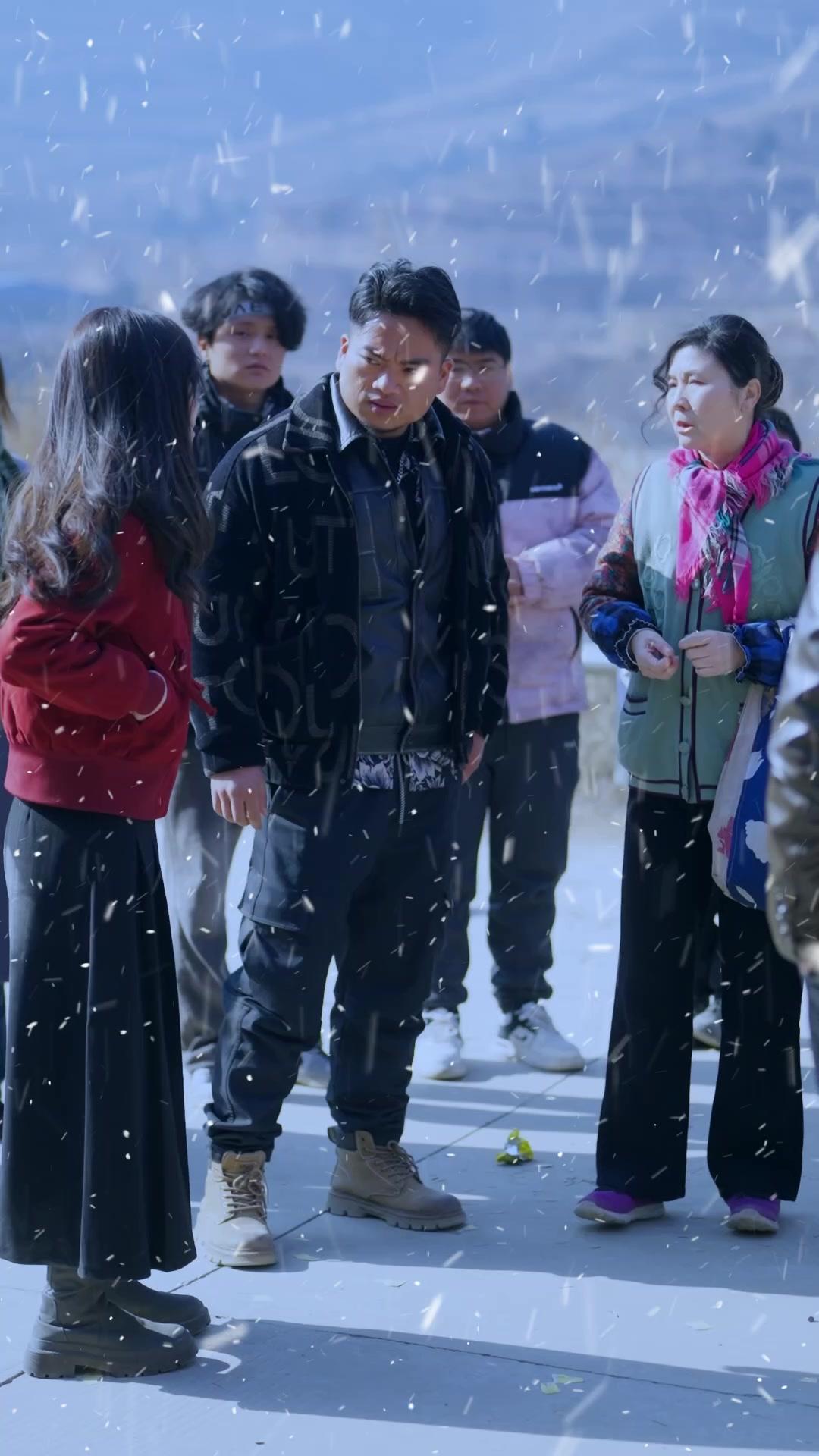 Later, the gray-haired man steps forward—not to mediate, but to *acknowledge*. His voice, though unheard, is conveyed through his posture: shoulders relaxed, head tilted, a faint, weary smile playing at his lips. He says something that makes Mei Ling glance up, startled, then nod slowly. Zhang Wei’s expression doesn’t soften, but his stance loosens—just barely. The tension doesn’t dissolve; it recalibrates. Like tectonic plates shifting underground, the surface remains still, but everything beneath has changed. Xiao Yu, sensing the shift, tugs Mei Ling’s sleeve and points upward, toward the sky, where snow continues to fall in slow, deliberate spirals. He doesn’t understand the stakes. He only knows that the grown-ups are breathing differently now.