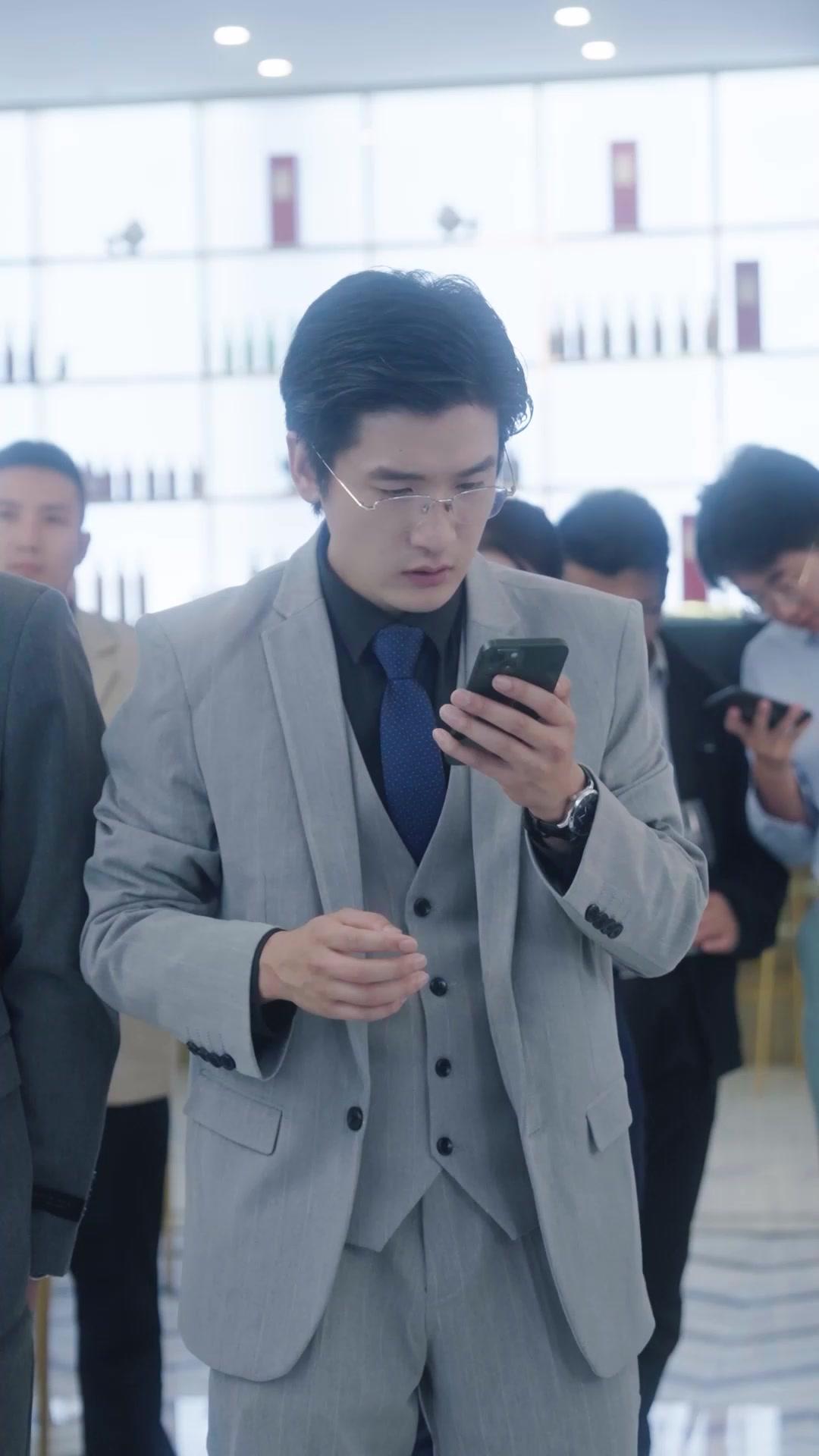 From the very first frame, Zhou Lin stands apart—not physically, but energetically. While others scroll, sip, whisper, he remains still. Arms crossed. Shoulders relaxed but alert. His dark pinstriped shirt is unadorned, no pocket square, no watch visible until later, when a sleek silver chronograph peeks out from beneath his sleeve—a detail that feels less like vanity and more like a signature. He’s not trying to impress. He’s waiting to be impressed. Or rather, to be *proven wrong*.