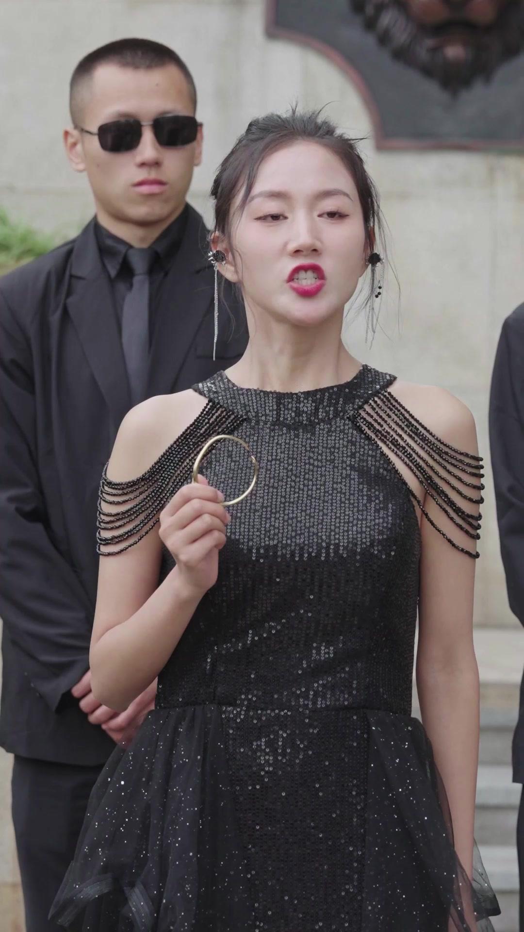 Let’s talk about the kind of scene that doesn’t just linger in your mind—it haunts you. In the opening frames of *After Divorce, She Became the Richest*, we’re dropped into a garden gathering that feels elegant on the surface but thrums with unspoken tension. Lin Xiao, dressed in a sequined black gown with delicate chain-embellished shoulders, stands poised—her lips painted crimson, her eyes sharp as cut glass. Behind her, a silent bodyguard in sunglasses and a tailored black suit watches like a statue, his presence more ominous than reassuring. She holds a gold bangle in her hand—not just any bangle, but one that glints with quiet significance, as if it carries the weight of a thousand unsaid words. This isn’t mere jewelry; it’s a relic, a trigger, a key. And when she speaks—her voice low, deliberate, almost mocking—you can feel the air shift. The other guests, including the poised yet visibly unsettled Chen Yuting in her iridescent blue dress, exchange glances that say everything: this is not a party. It’s a reckoning.