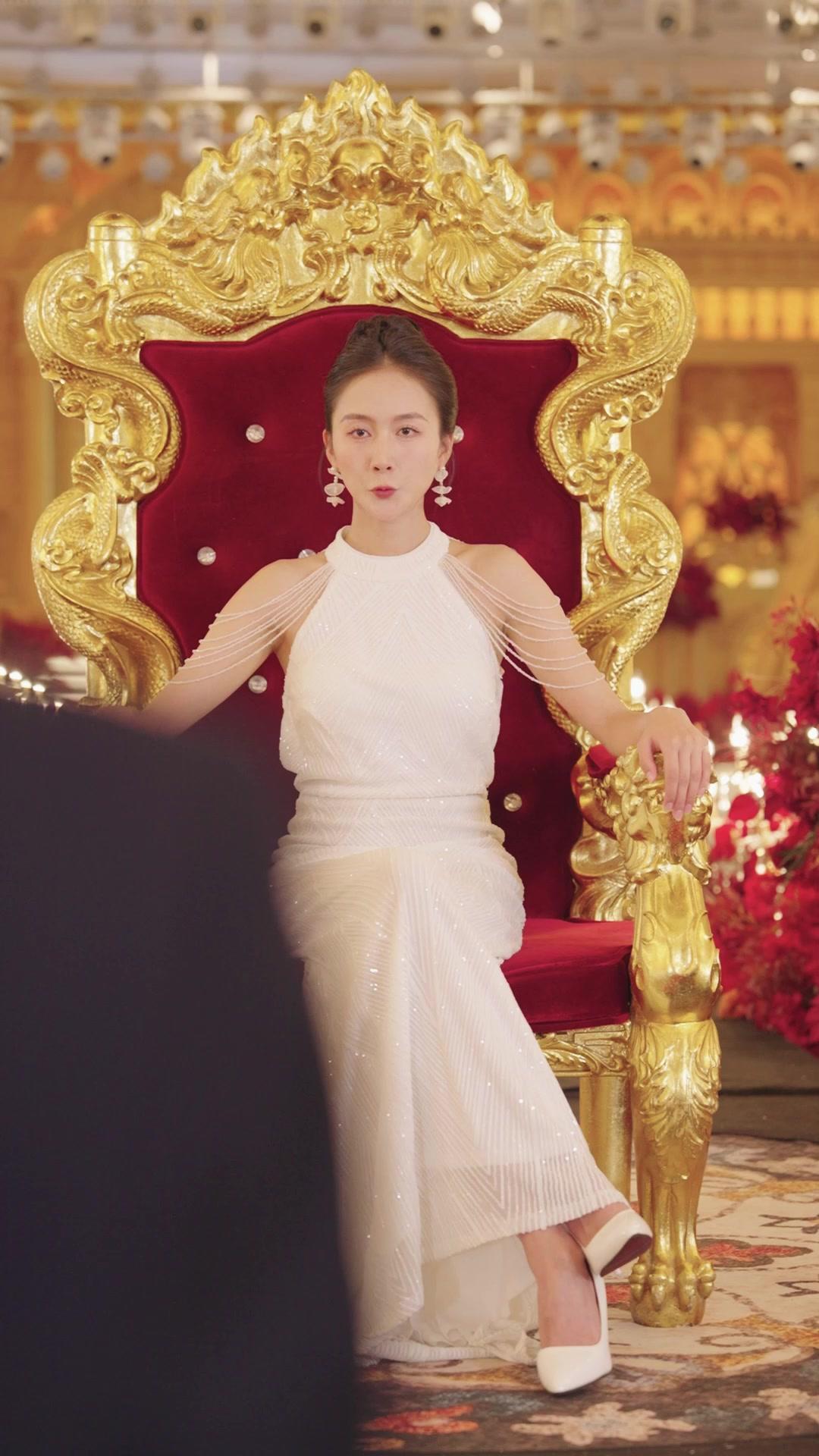 The opening shot of *After Divorce, She Became the Richest* is not just a visual flourish—it’s a declaration. A woman sits regally on a gilded throne, its back carved with serpentine dragons coiling around ruby-red velvet, each curve whispering power, legacy, and unapologetic dominance. Her white gown—structured yet fluid, shimmering like crushed moonlight—is adorned with delicate strands of pearls cascading from her shoulders like liquid constellations. Her hair is swept into a tight, elegant chignon, revealing earrings shaped like blooming lotuses, pale and serene, contrasting sharply with the fire in her eyes. This is not a bride awaiting a groom; this is a sovereign returning to claim what was always hers. And yet, the camera lingers—not on her crown (there is none), but on her hands, resting lightly on the armrests, fingers poised as if ready to snap a command into existence. That subtle tension between grace and control defines the entire sequence.