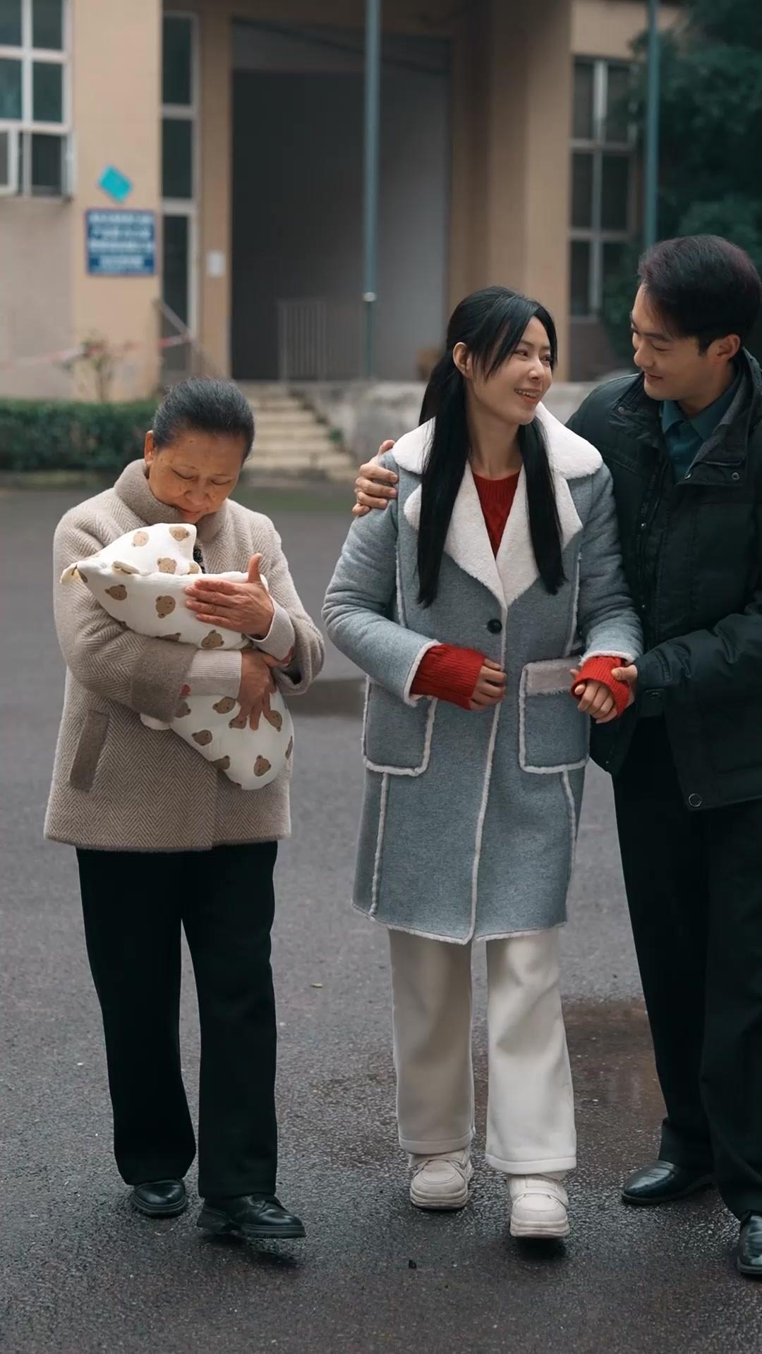 In the opening frames of *Betrayed in the Cold*, we’re lulled into a sense of warmth—literally and emotionally. A trio walks across a damp courtyard: an elderly woman cradling a swaddled infant wrapped in a blanket dotted with teddy bears, a young woman in a soft gray coat with white fleece trim and red knit wrist warmers, and a man in a black puffer jacket, his arm draped casually over the young woman’s shoulder. They smile. They laugh. The baby stirs gently in its bundle. The setting is modest—a beige institutional building with tiled archways, wet pavement reflecting muted light, a faint scent of rain lingering in the air. It feels like a family moment, perhaps after a hospital discharge, or a quiet homecoming. But the camera lingers just a beat too long on the man’s face—not the young man walking beside the woman, but the driver reflected in the side mirror of a parked sedan nearby. His eyes narrow. His lips twitch—not in amusement, but calculation. That reflection is the first crack in the veneer of normalcy.