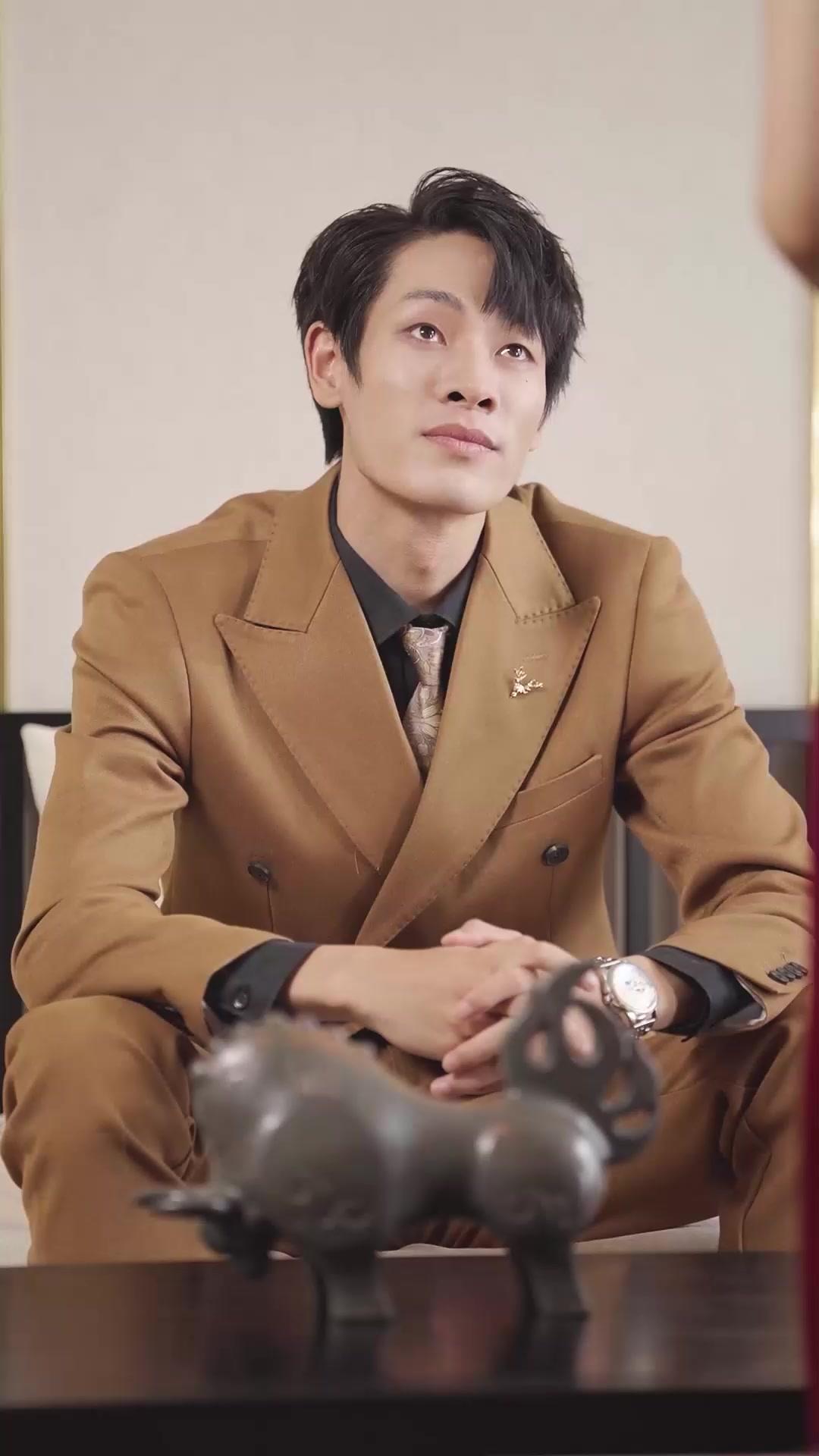 Lin Wei sits with his hands clasped—not in prayer, but in containment. His tan double-breasted suit is immaculate, almost theatrical in its precision, yet the slight crease at his temple, the way his fingers twitch when Shen Yuer speaks, betrays a man holding himself together by sheer willpower. He wears a brooch shaped like a stylized phoenix—a subtle nod to rebirth, perhaps, or irony. His watch gleams under the ambient light, not as a status symbol, but as a countdown device: how much longer before he cracks? When he leans forward, elbows on the table, the bronze lion figurine between them becomes a silent third party—its fierce gaze fixed on neither, yet somehow judging both. That lion isn’t decoration; it’s a motif. In Chinese symbolism, lions guard thresholds. Here, it guards the threshold between civility and collapse.