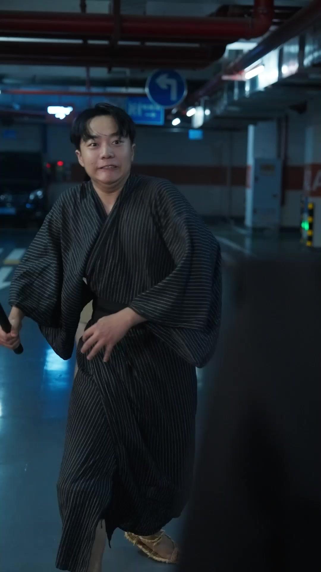 There’s a particular kind of horror—not the jump-scare kind, but the slow-drip kind—that lives in the space between a scream and a sigh. That’s where Echoes of the Bloodline plants its flag, deep in the marrow of a parking garage where fluorescent lights hum like trapped insects and the smell of rubber and diesel lingers like a curse. We meet Li Wei first—not as a person, but as motion: a blur of dark stripes, bare feet slapping wet concrete, baton raised like a prayer he’s too scared to utter. His face, when the camera catches it, is flushed with panic, not fury. He’s not attacking. He’s *reacting*. To what? We don’t know yet. But the way his shoulders hunch, the way his breath comes in short bursts—he’s already lost before the first blow lands. And then, Lin Mei steps into frame. Not running. Not shouting. Just *arriving*. Her black coat, tailored with ornate gold-and-white cuffs, moves like water over stone. She doesn’t block. She *intercepts*. One hand on his forearm, the other on his shoulder blade—two points of contact, two vectors of control—and suddenly, Li Wei is folding backward, his body betraying him, his mouth open in a soundless cry. The fall isn’t graceful. It’s brutal. He hits the floor with a thud that echoes off the pillars, and for a beat, the world holds its breath.