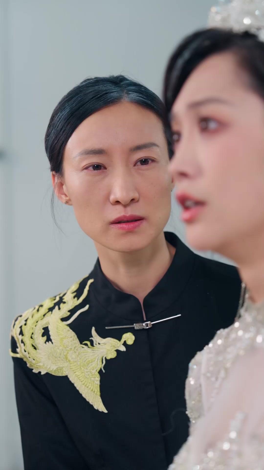 Let’s talk about the tiara. Not as jewelry, but as armor. In Echoes of the Bloodline, Lin Xiao’s crystal crown isn’t a symbol of royalty—it’s a cage made of light. Every facet catches the sterile glow of the venue’s LED canopy, turning her head into a beacon of forced grace while her soul quietly fractures beneath it. The scene opens with intimacy turned invasive: a close-up of two women locked in a stare that carries the weight of generations. On one side, Lin Xiao—bride, heiress, pawn—in a gown so heavily beaded it looks less like fabric and more like a second skin of armor. On the other, her mother, dressed in a black qipao embroidered with a golden phoenix that coils around her shoulder like a serpent guarding treasure. The phoenix isn’t decorative. It’s a declaration: *I am the keeper of the bloodline.* And tonight, she’s transferring custody—not of a daughter, but of an asset.