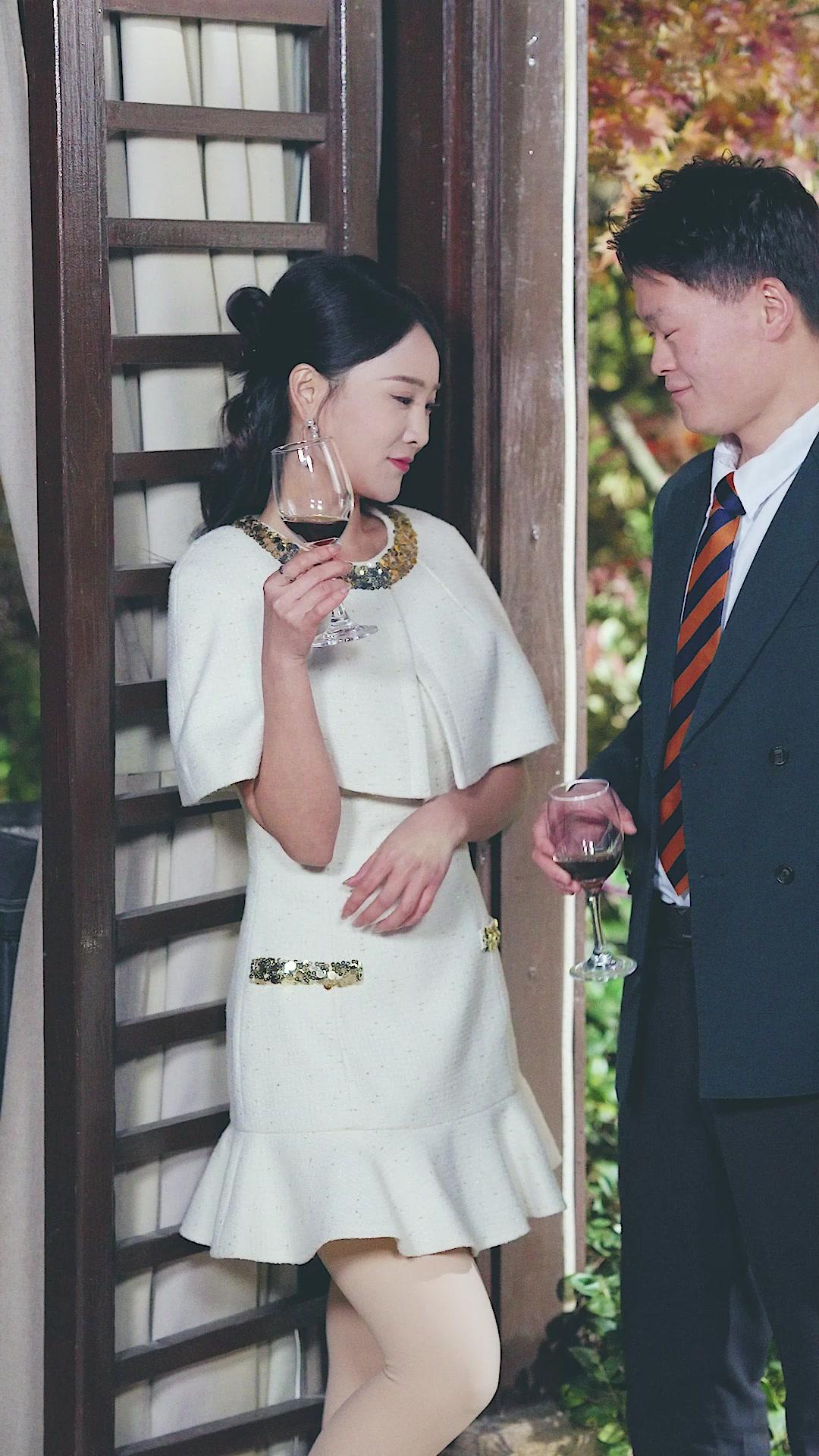 In the quiet elegance of a late autumn afternoon, where maple leaves drift like forgotten promises and the pool reflects not just sky but the weight of unspoken truths, Falling Stars delivers a masterclass in visual storytelling through restraint. What begins as a seemingly innocuous social gathering—wine glasses held with practiced grace, smiles calibrated to perfection—quickly unravels into a psychological ballet of desire, displacement, and quiet rebellion. At its center stands Li Wei, impeccably dressed in a navy double-breasted suit, his striped tie a subtle echo of order in a world about to tilt. Beside him, Chen Xiao, radiant in her cream tweed ensemble adorned with sequined collar and cuffs, sips red wine with the poise of someone who has long mastered the art of performance. Her earrings—pearls suspended like teardrops—catch the light each time she turns her head, betraying nothing yet hinting at everything.