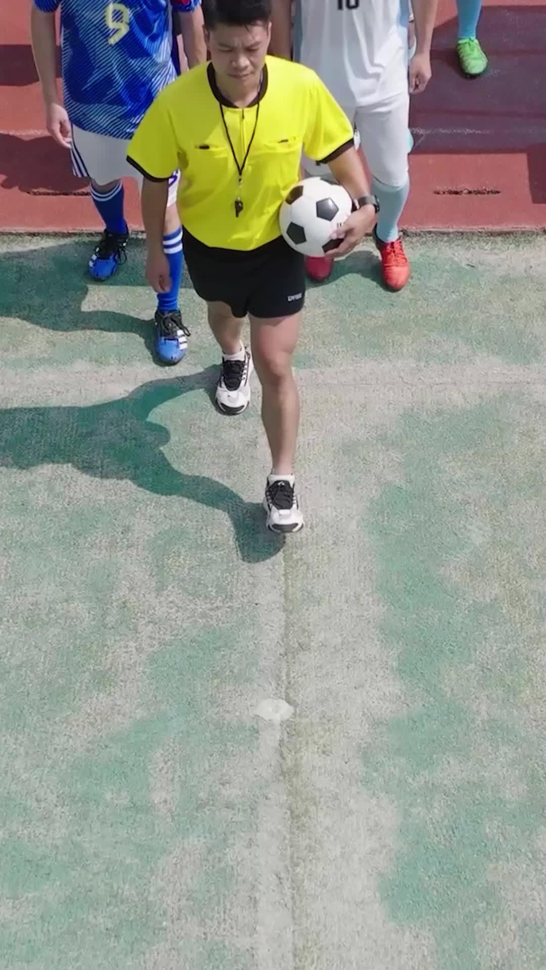 The opening frames of Football King don’t just show a match—they stage a slow-motion unraveling of authority. We see the referee, crisp in his yellow jersey, walking forward with the ball like a priest carrying a sacred relic. Behind him, two teams line up: one in blue, marked by number 9’s defiant posture and red armband; the other in white, bearing the characters ‘Qingshan’—like a quiet banner of tradition. But it’s not the uniforms that tell the story. It’s the way number 10 in white, wearing a neon-green captain’s band, walks with his head slightly bowed, eyes scanning the ground as if already rehearsing an apology. His teammate, number 7, stands beside him—not with solidarity, but with the tense stillness of someone bracing for impact. This isn’t pre-game ritual. It’s pre-implosion.