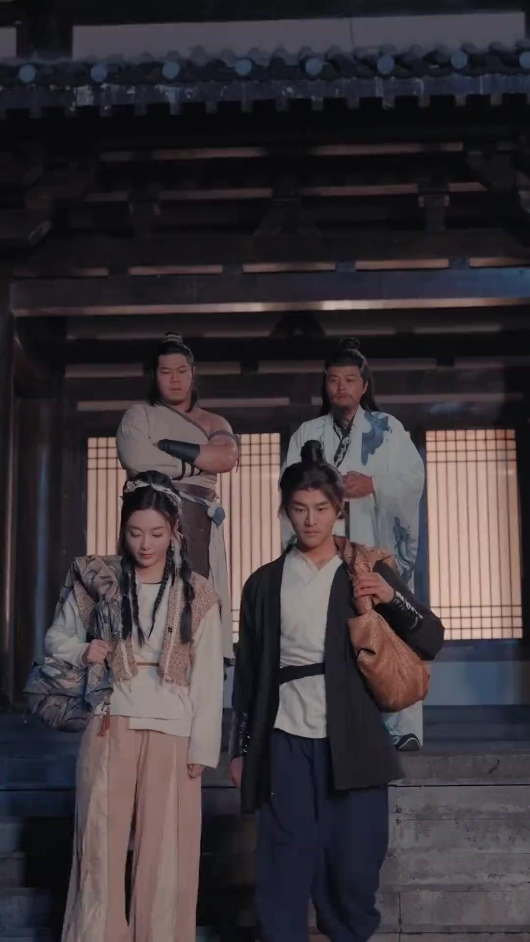 Let’s talk about the architecture of tension in this sequence. The initial group shot on the temple steps isn’t just exposition—it’s a visual contract. Four people, two levels, asymmetrical balance. Zhang Liang and Xiao Yun occupy the lower tier, physically closer to the ground, to the earth, to labor. The two men above them stand elevated—not just in height, but in symbolic weight. The burly man’s crossed arms form a barrier; the elder’s folded hands suggest surrender or contemplation—we’re not sure yet, and that ambiguity is deliberate. The lighting is key here: warm light spills from the paper-screen windows behind them, but it doesn’t reach the foreground. Zhang Liang and Xiao Yun are half in shadow, literally and metaphorically positioned on the threshold between tradition and reinvention. When they descend the stairs, the camera follows from above, emphasizing their smallness against the vast courtyard—yet their stride remains unhurried, dignified. They’re not fleeing. They’re *reclaiming*. And the banners—those bold ‘Zhang’ insignias—don’t wave triumphantly; they hang slightly tattered, frayed at the edges, whispering of endurance, not glory.