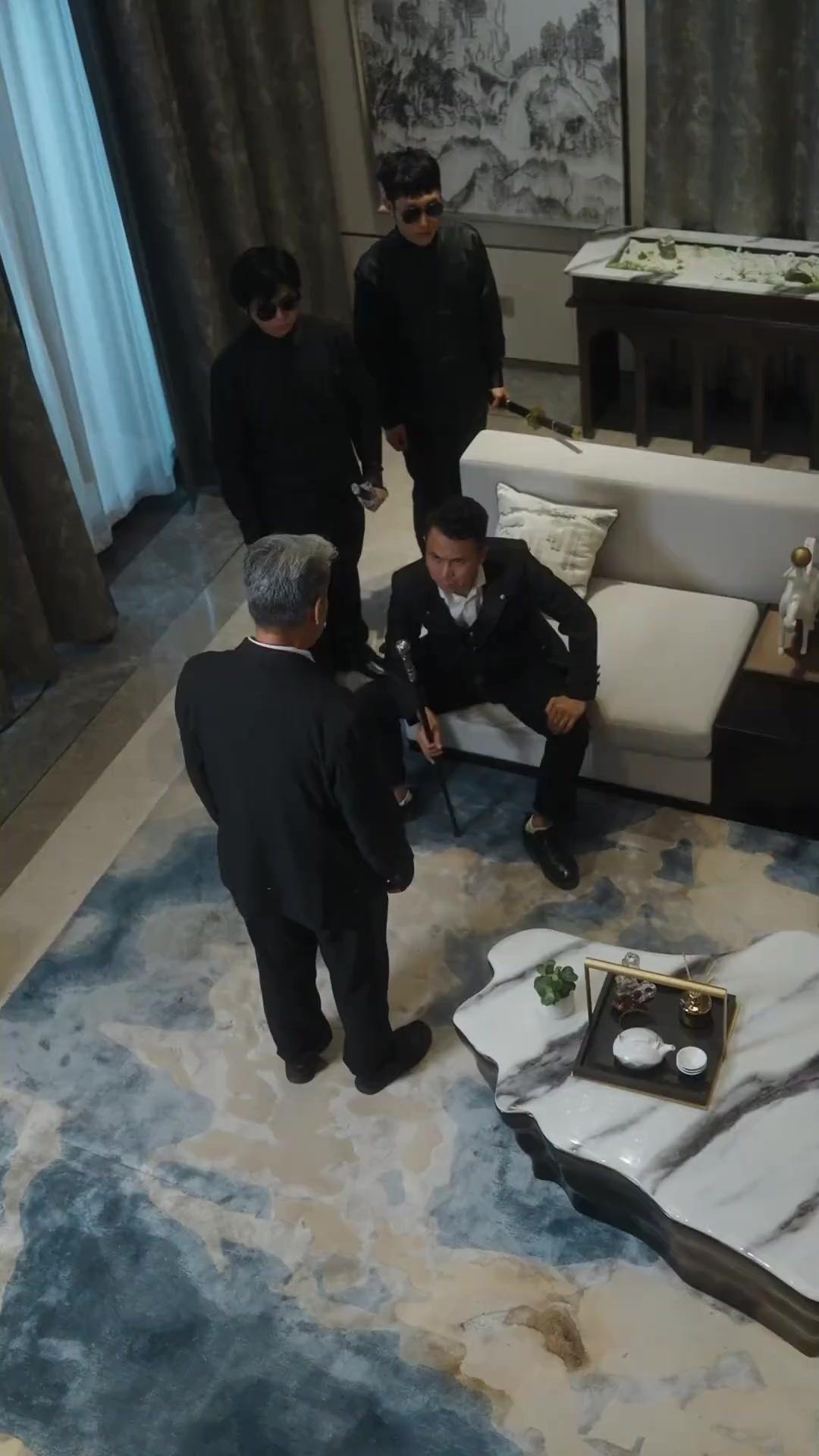 Elder Chen, meanwhile, is a study in controlled disintegration. His suit is pristine, his posture upright—even as his knees begin to betray him. His voice, when he finally speaks, is low, gravelly, layered with decades of practiced calm now fraying at the edges. He doesn’t deny. He *qualifies*. “That was another time,” he murmurs, eyes fixed on the scroll Xiao Wei holds like a sacred text. And Xiao Wei—ah, Xiao Wei—is the wildcard. Dressed in minimalist elegance, his jacket’s asymmetrical closure hinting at rebellion masked as refinement, he moves with the quiet confidence of someone who knows the script better than the actors. He doesn’t interrupt. He doesn’t plead. He simply *unrolls*. The scroll reveals not financial records or legal deeds, but a faded photograph—two boys, one older, one younger, standing beside a broken bicycle in a courtyard dusted with cherry blossoms. The image is blurred at the edges, as if time itself has tried to erase it. Elder Chen’s breath hitches. Lin Zeyu freezes. The enforcers shift, almost imperceptibly, their sunglasses reflecting the sudden shift in gravity.
