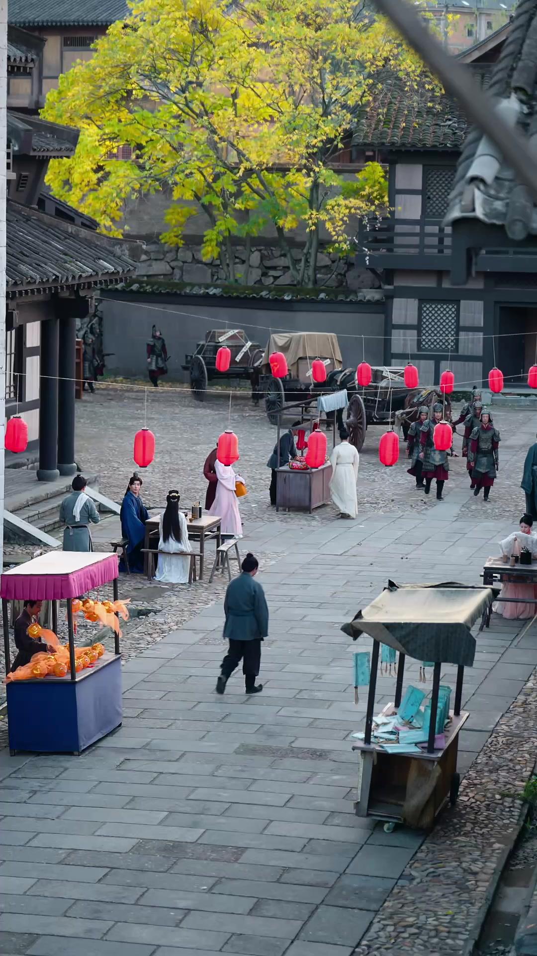 The sequence opens with wide shots of the courtyard—red lanterns strung between eaves, a horse-drawn cart creaking past, soldiers in dark armor moving with synchronized precision. The world feels alive, chaotic, full of noise. Yet when the camera narrows to the table, everything else fades. The cobblestones blur. The chatter recedes. Even the autumn wind seems to hold its breath. This is where the real story lives: in the space between two people who refuse to name what’s between them.