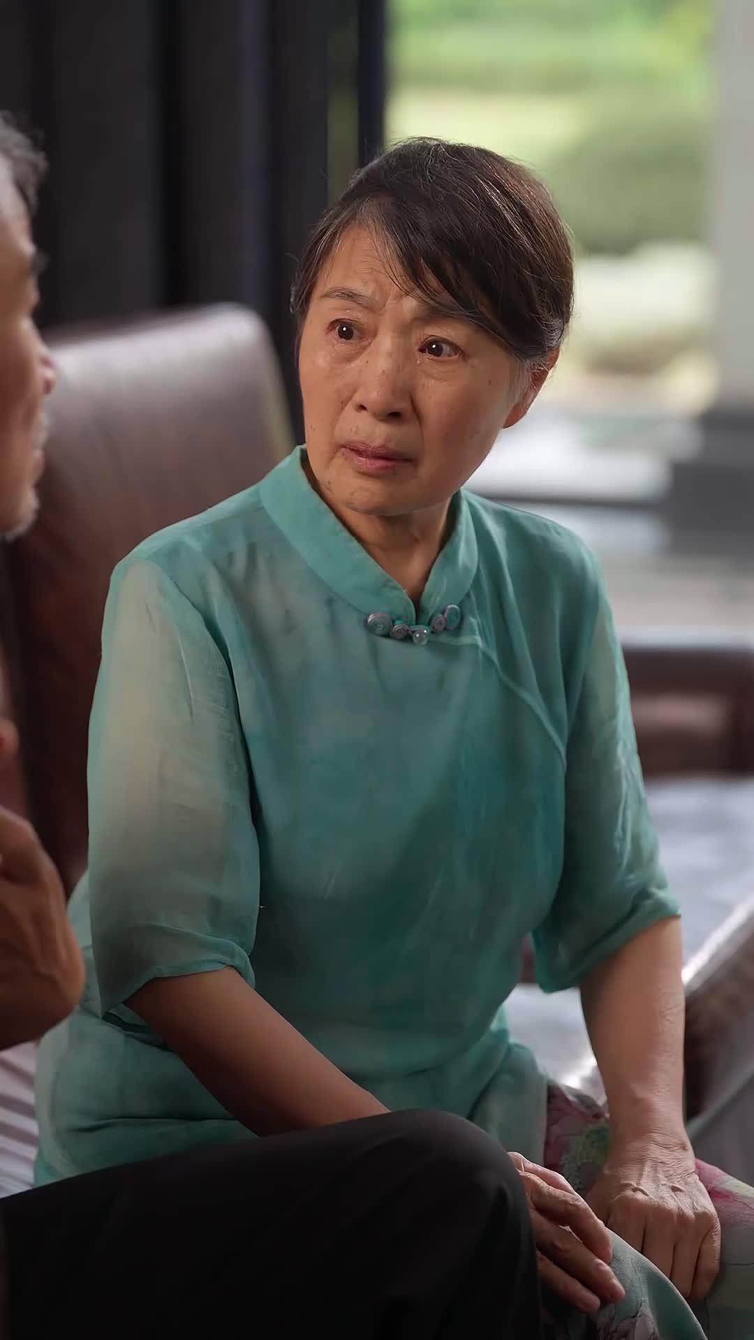 The elder woman, Li Meihua, dressed in a translucent turquoise qipao embroidered with lotus blossoms and bamboo—a symbol of resilience and purity—sits rigidly on the leather sofa, her fingers clasped like she’s holding back a flood. Her eyes, sharp yet weary, track the entrance of the younger woman in the beige plaid shirt: Xiao Yu. Not a daughter, not a sister, but someone whose presence alone makes Li Meihua’s breath hitch. Xiao Yu walks in with the posture of someone who’s rehearsed this moment a hundred times—hands folded, gaze steady, lips pressed into a line that could be resolve or repression. She doesn’t sit. She *stands*, as if waiting for permission to exist in this space. And when Li Meihua rises—slowly, deliberately—and reaches for her wrist, the air thickens. That first touch isn’t affection. It’s an interrogation. A claim. A plea. Xiao Yu flinches, almost imperceptibly, but her body remains still, like a tree bracing against gale-force winds. Her expression? Not anger. Not guilt. Something far more devastating: resignation. As if she already knows how this ends, and has long since stopped fighting it.