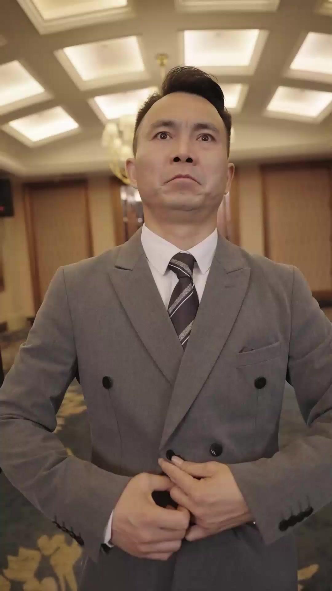 In the opulent corridor of a grand banquet hall—where chandeliers drip gold and carpet patterns bloom like frozen fireworks—a man in a grey double-breasted suit stands poised, fingers trembling as he fastens his jacket. His name is Lin Zeyu, and for the first ten seconds, he’s just another corporate drone, adjusting his tie with the quiet desperation of someone rehearsing a speech he’ll never deliver. But then—the camera tilts, the lighting shifts, and something cracks open in his posture. He doesn’t speak. He *reacts*. His eyes widen not with fear, but with recognition—as if he’s just remembered he’s not supposed to be here. Not as a guest. As a target.