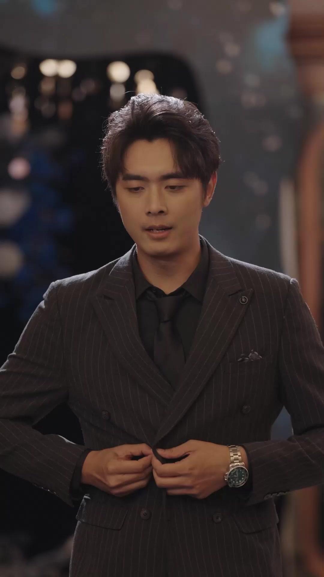 Let’s talk about the man who never sits down—Jiang Wei. In a world where status is measured in chair height and cufflink polish, his refusal to take a seat in *Guarding the Dragon Vein* is the most radical act of the entire sequence. From the very first frame at 00:00, he’s standing, adjusting his pinstripe jacket with fingers that tremble just enough to betray nerves, yet his posture remains rigid, almost sculptural. This isn’t insecurity; it’s strategy. He knows that in this room—where Chen Zhihao reigns from his gilded throne and Li Meiling commands attention without uttering a word—movement is power. Every step he takes, every slight turn of his head (00:17, 00:20, 00:59), is calibrated. He doesn’t linger near the wine table or join the whispering clusters; he positions himself *between* the key players, a living fulcrum. His black shirt, unbuttoned at the collar, contrasts sharply with the formal white of Chen Zhihao’s ensemble—a quiet rebellion in fabric. And that pocket square? Not silk, not linen, but something subtly patterned, folded with geometric precision. It’s a detail only someone who cares deeply about control would obsess over.