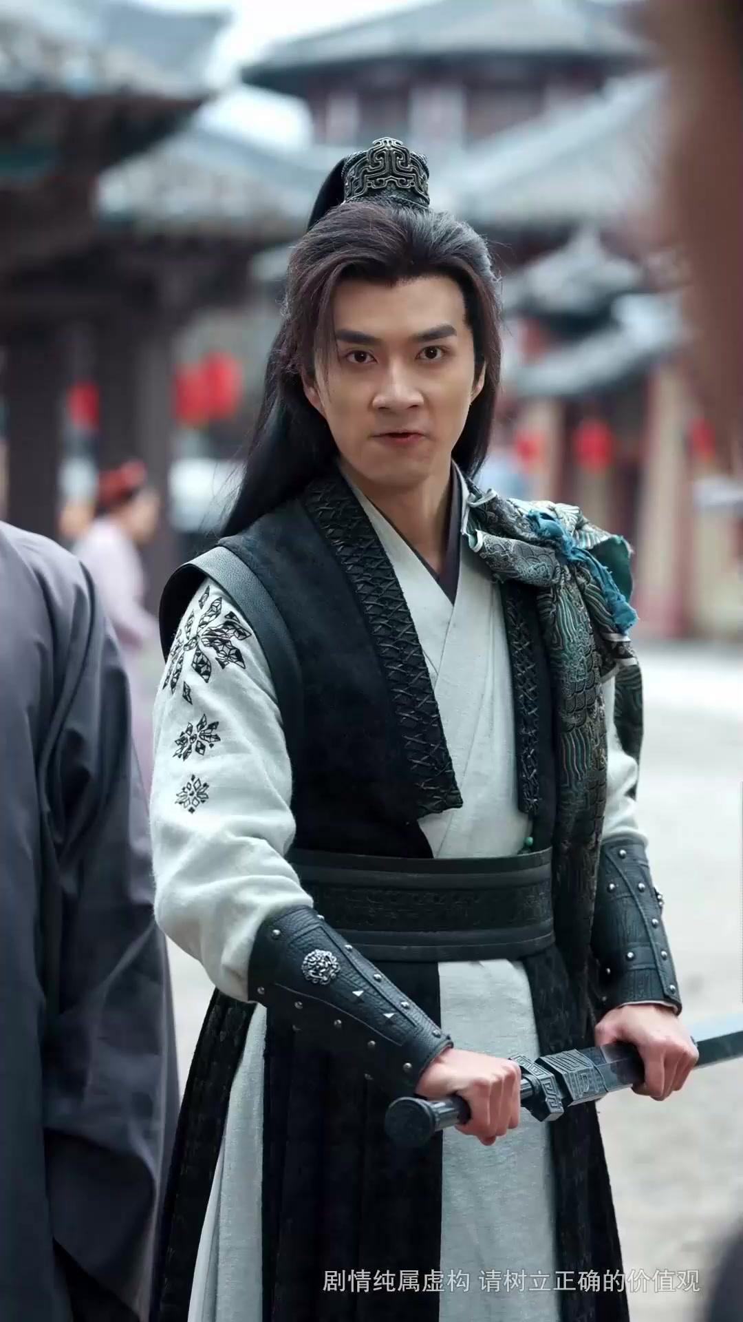 Let’s begin with Li Chen, the long-haired swordsman whose attire—white under-robe stitched with snowflake motifs, black armored vest embroidered with dragon-scale patterns, and that unmistakable jade-and-bronze hairpin—screams ‘I’m not here to play.’ His grip on the sword is firm, yes, but never aggressive. He holds it horizontally, not raised, not lowered—like a man who knows the weapon is less about cutting flesh and more about cutting through pretense. When he speaks (though no subtitles are provided, his mouth moves with deliberate cadence), his eyes don’t flicker toward the guards. They lock onto the older man in grey robes—the one with the mustache, the gold fish-shaped hairpiece, and the posture of someone who’s seen too many rebellions fail before breakfast. That man is Governor Zhao, and his stillness is louder than any shout. He doesn’t reach for his own weapon. He doesn’t even shift his weight. He simply watches Li Chen like a scholar observing a flawed ink stroke—disappointed, but not surprised.