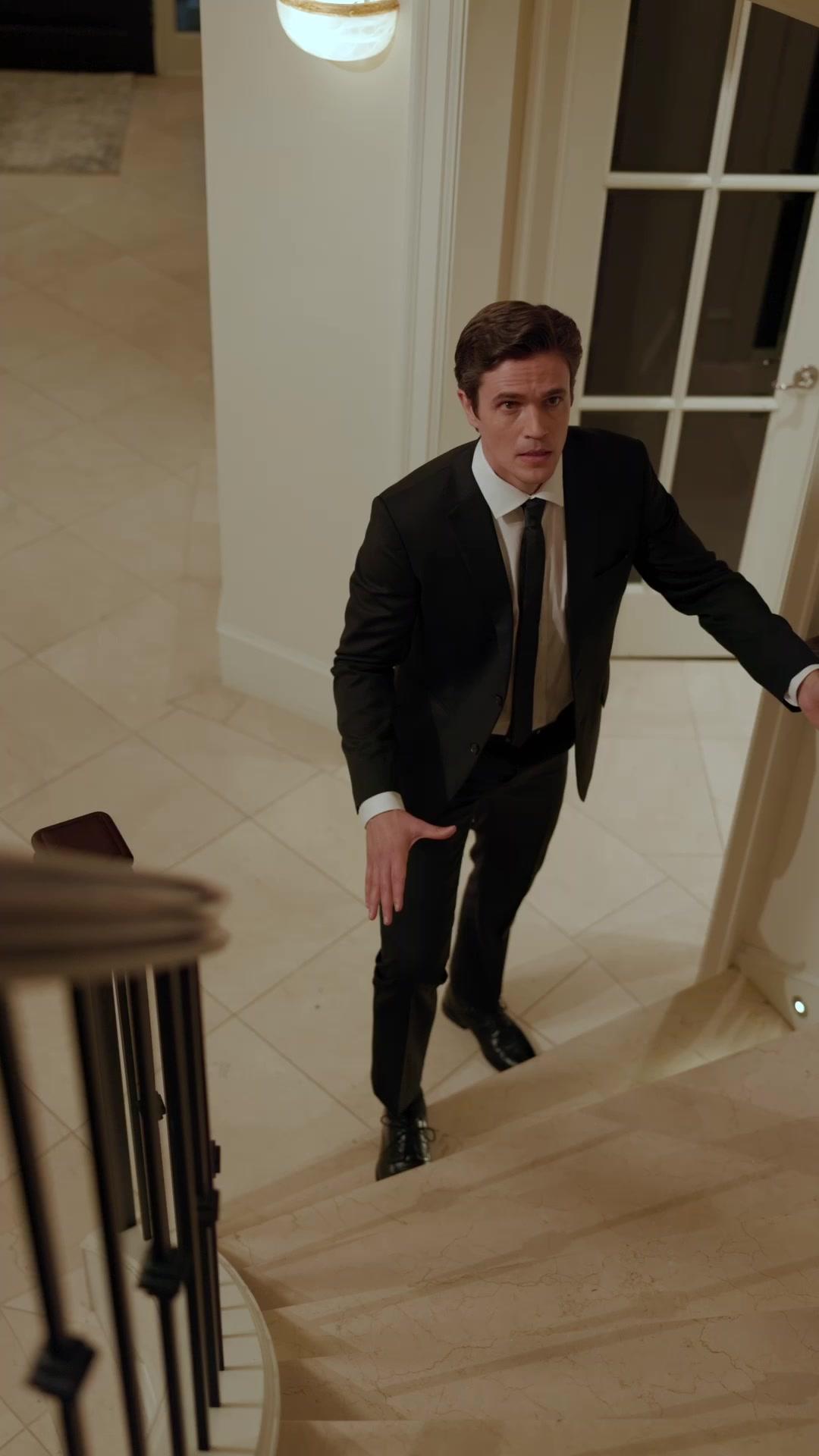 Let’s talk about the kind of scene that doesn’t just linger—it haunts. In this tightly wound sequence from *Jade Foster Is Mine*, we’re dropped into a grand, softly lit foyer where marble stairs curve like a silent accusation and a chandelier hangs like a judgmental eye. The air is thick with unspoken history, and every footstep echoes like a confession. What begins as a tense confrontation between Daniel Hartwell and Jade Foster quickly spirals into something far more dangerous—not because of what’s said, but because of what’s *withheld*. Daniel, impeccably dressed in black, descends the stairs with practiced calm, his posture rigid, his hands open—not in surrender, but in performance. He’s not surprised. He’s waiting. And that’s the first red flag. When Jade appears, her blue dress flowing like water over stone, her fingers already trembling near her throat, you know she’s not here to negotiate. She’s here to unravel him. Her voice cracks not from fear, but from fury—each line delivered like a shard of glass pressed against the skin: ‘I did a full background check on you from day one.’ That’s not paranoia. That’s strategy. She’s been watching. Studying. Waiting for the moment the mask slips. And it does—slowly, deliberately—when she reveals she knows about his sister’s ex-husband’s sudden legal turnaround. The camera lingers on her face as she says, ‘It was you,’ and the knife appears—not as a weapon, but as punctuation. A physical manifestation of the truth she’s holding like a blade against his chest. This isn’t impulsive violence; it’s ritualized exposure. *Jade Foster Is Mine* thrives in these micro-moments where power shifts not through shouting, but through silence, through the way Daniel’s eyes flicker when she names the custody lawsuit he orchestrated. He doesn’t deny it. He *leans in*. That’s the genius of the scene: the real tension isn’t whether she’ll stab him—it’s whether he’ll let her. Because when she whispers, ‘You turned my sister’s life upside down just so you could have me playing house with you,’ the horror isn’t in the accusation. It’s in the chilling plausibility. His stillness speaks louder than any rebuttal. He doesn’t flinch when she presses the knife to his suit jacket. He doesn’t reach for her wrist. He watches her—*really* watches her—as if memorizing the exact shade of betrayal in her eyes. And then comes the pivot: ‘Then let me show you how much I care.’ Not an apology. Not a plea. A threat wrapped in tenderness. The camera tightens, the lighting narrows, and for a heartbeat, the world shrinks to two people standing inches apart, breathing the same poisoned air. Jade’s hand trembles—not from weakness, but from the weight of choice. She drops the knife. Not because she’s forgiving. Because she realizes: the real weapon wasn’t the blade. It was the story he let her believe. The final shot—low angle, the knife lying abandoned on the floor, their feet framing it like evidence at a crime scene—says everything. She didn’t kill him. She exposed him. And in *Jade Foster Is Mine*, exposure is often deadlier than blood. This isn’t a love story gone wrong. It’s a psychological excavation, where every line peels back another layer of manipulation, and the most devastating wounds are the ones you don’t see until they’ve already festered. Daniel Hartwell thought he controlled the narrative. Jade Foster proved that the best revenge isn’t violence—it’s clarity. And once you see the truth, there’s no going back. That’s why this scene sticks with you long after the screen fades: because it doesn’t ask if Jade is justified. It asks if *you* would have dropped the knife too. *Jade Foster Is Mine* doesn’t give answers. It gives mirrors. And sometimes, the reflection is the scariest part. The production design—the muted golds, the cold marble, the way the light catches the edge of the knife like a warning—enhances the claustrophobia. There’s no escape in this house. Every corridor leads back to the truth. Every staircase circles toward confrontation. Even the floral arrangement on the side table feels like a trap: delicate, beautiful, and utterly out of place in a war zone. Jade’s earrings—small hoops, understated—contrast violently with the raw emotion on her face. She’s not dressed for a fight. She’s dressed for a dinner party. Which makes the escalation all the more terrifying. This is domestic horror at its finest: no monsters under the bed, just the man across the room who knows exactly how to break your heart by rebuilding it in his image. And when she finally whispers, ‘I don’t want to hear another word from you,’ it’s not the end. It’s the beginning of the silence that will echo louder than any scream. *Jade Foster Is Mine* understands that the most intimate betrayals aren’t shouted—they’re whispered in the dark, over shared wine, while pretending to love each other. That’s the real horror. Not the knife. The fact that she held it—and he let her.