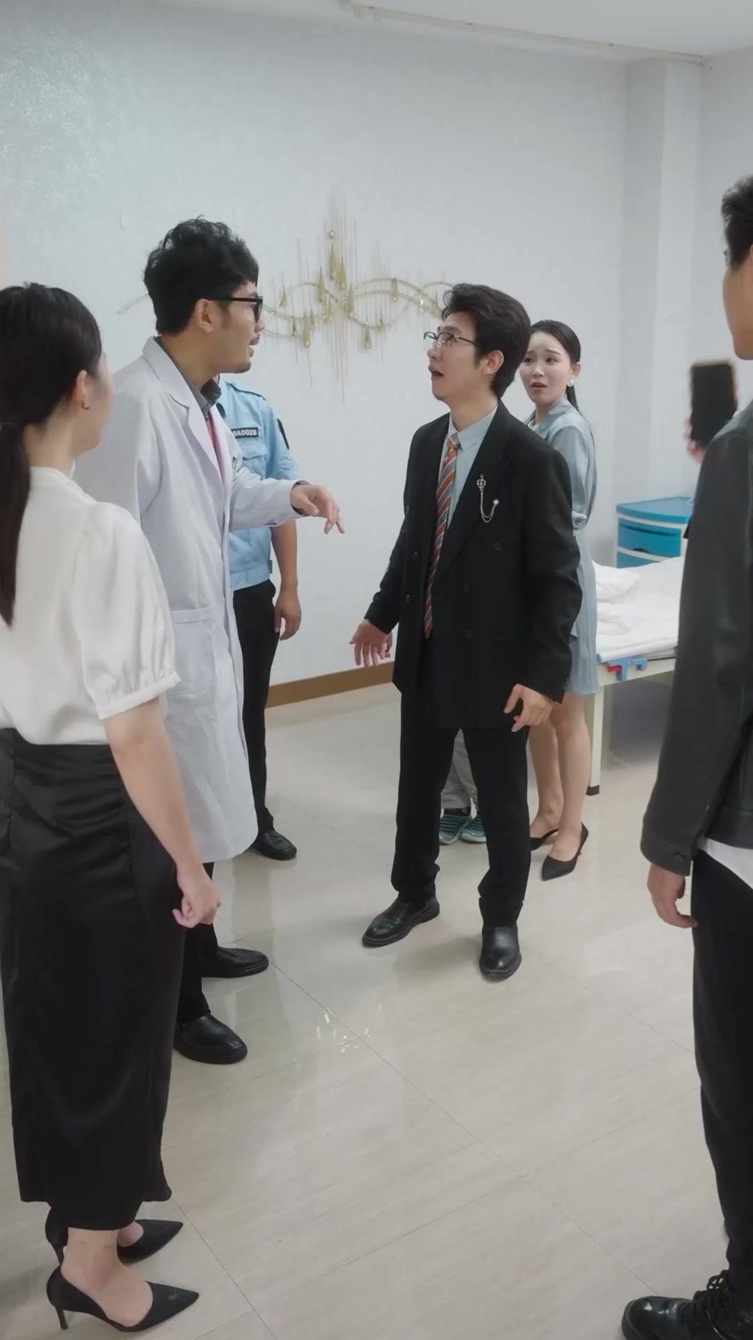 Let’s begin with Dr. Lin, the bespectacled man in the white coat whose hair is perpetually disheveled, as if he’s been running his fingers through it since the last time someone told him the truth. His glasses are thick, black-rimmed, and slightly askew—not because he’s clumsy, but because he’s always leaning forward, straining to hear what’s *not* being said. In the opening sequence, he stands center-frame, gesturing wildly toward the young man in the black suit—Zhou Wei—whose striped tie (orange and gray, like a warning sign) flutters with each sharp inhalation. Zhou Wei doesn’t flinch. He *laughs*. Not a chuckle. A full-throated, head-tilted-back cackle that echoes off the tiled floor, startling the nurse in the pale blue dress behind him. She covers her mouth, eyes wide—not with shock, but with recognition. She’s seen this before. She knows the script. And yet, she still watches, because even rehearsed chaos is better than silence.