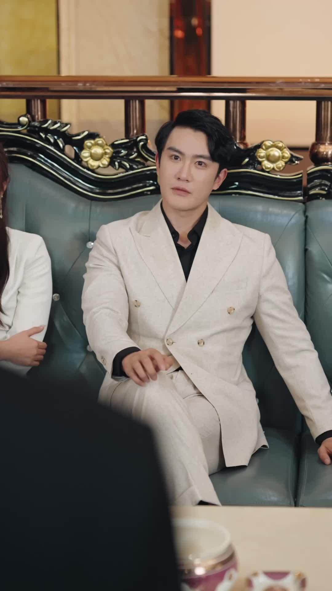 There’s a particular kind of dread that settles in a room when no one raises their voice—when the loudest sound is the clink of a glass being set down too carefully, or the rustle of fabric as someone shifts in their seat, unwilling to break eye contact. That’s the atmosphere in this pivotal sequence from Karma Pawnshop, where power isn’t seized with fists or guns, but with stillness, with timing, with the unbearable weight of expectation hanging in the air like incense smoke. Lin Zeyu doesn’t command the room—he *occupies* it. His off-white suit isn’t flashy; it’s deliberate. In a space saturated with dark tones and gilded excess, he stands out not because he’s loud, but because he’s *unmoved*. While others fidget, adjust ties, glance at their phones (or rather, at the screens behind them, glowing with cryptic text), he remains anchored, his hands either resting calmly on his knee or folded with quiet precision. His facial expressions are minimal—no scowling, no sneering—but his eyes? They’re surgical. In frame 15, as he turns his head slightly, mouth parted mid-sentence, you don’t need subtitles to know he’s delivering a line that will echo long after the scene ends. It’s not the words that matter; it’s the fact that everyone else *stops* when he begins to speak. That’s authority. Not earned through volume, but through inevitability.