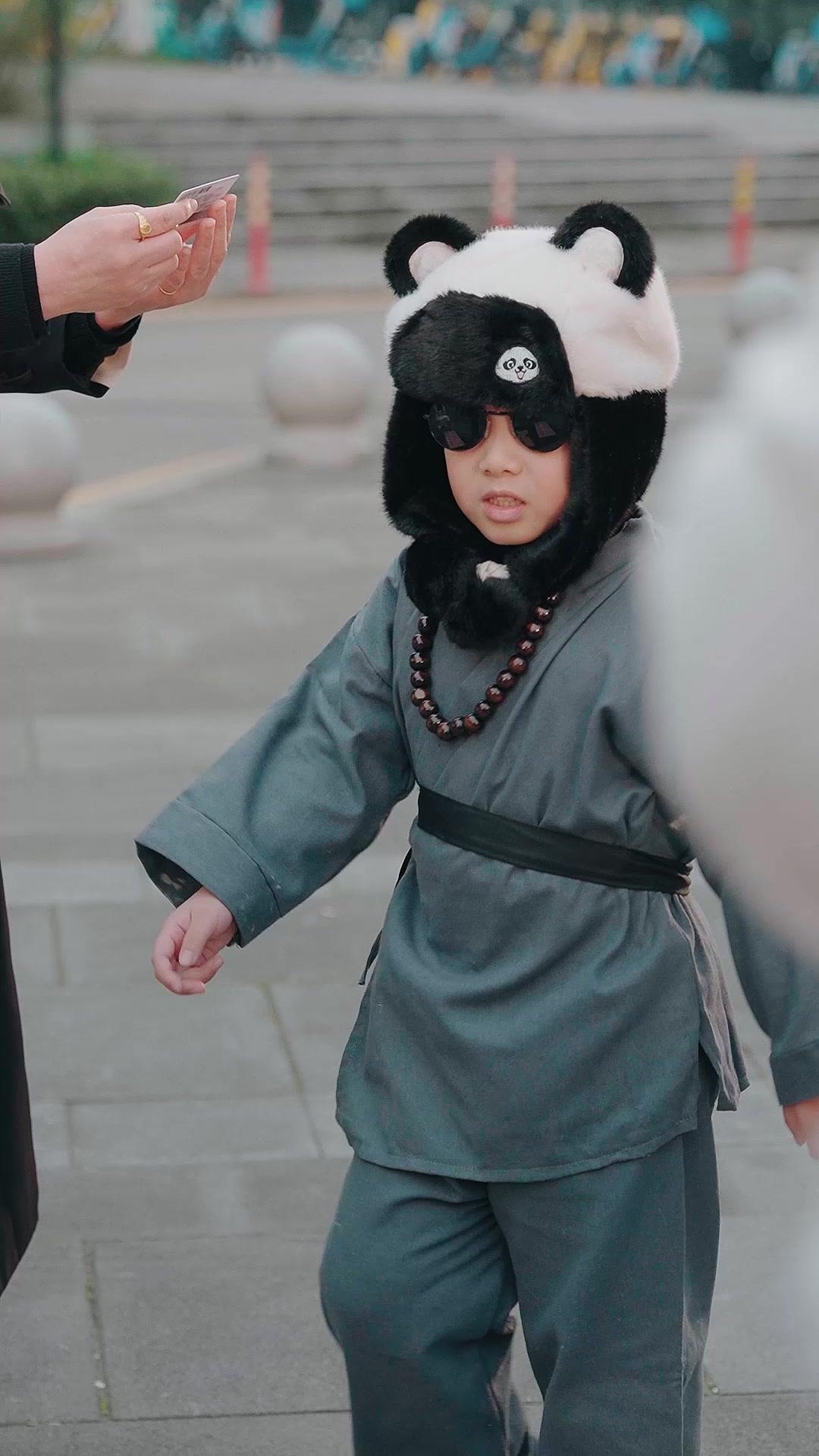 In a quiet urban plaza, flanked by manicured hedges and distant lampposts, a scene unfolds that feels less like casual street life and more like a carefully staged tableau—part drama, part social experiment, all wrapped in the soft tension of unspoken hierarchies. At its center stands Kong Fu Leo, a boy no older than eight, draped in a charcoal-gray robe cinched with a black sash, his neck adorned with a heavy string of dark wooden prayer beads. His head is crowned by an oversized panda-themed fur hat—black ears perched atop white fluff, a tiny embroidered panda face winking from the forehead—and over his eyes, aviator sunglasses that reflect the world without revealing his own gaze. He doesn’t smile. He doesn’t frown. He simply *exists*, radiating a stillness that unnerves everyone around him. This isn’t costume play; it’s performance as identity. Every gesture he makes—the slight tilt of his chin, the way he lifts one hand mid-sentence like a monk halting a storm—is deliberate, rehearsed, almost ritualistic. When he opens his mouth, his voice carries a surprising resonance, not childish but measured, as if channeling some ancient wisdom he’s only half-understood. The crowd parts instinctively when he moves, not out of fear, but out of deference to the role he’s assumed. And yet, beneath the theatricality, there’s vulnerability: the way his fingers twitch near the beads, how his shoulders stiffen when the older woman—Madam Lin, her silver-streaked hair pulled back severely, layered in a monochrome coat with pearl strands coiled like armor—places a hand on his shoulder. Her touch is both grounding and possessive, a reminder that this performance is sanctioned, curated, perhaps even demanded. She speaks sharply, her lips forming words that cut through the ambient murmur like scissors through silk. Her eyes widen at intervals—not with surprise, but with practiced indignation, as if she’s been rehearsing outrage for years. She points, she gestures, she leans forward, her posture rigid with moral certainty. Yet watch closely: when Kong Fu Leo turns away, her expression flickers—not into disappointment, but into something quieter, something like exhaustion. She knows the script. She wrote parts of it. Meanwhile, beside her, Xiao Mei stands with arms crossed, clutching a quilted black handbag like a shield. Her white tweed jacket is frayed at the cuffs, a subtle rebellion against the polished aesthetic surrounding her. She watches Kong Fu Leo not with awe or irritation, but with a kind of weary fascination, as if she’s seen this act before—and knows how it ends. Her expressions shift like weather patterns: skepticism, then reluctant amusement, then sudden alarm when Madam Lin raises her voice. At one point, Xiao Mei reaches out, not toward Kong Fu Leo, but toward the ground, where yellow envelopes lie scattered like fallen leaves. She picks one up, flips it over, and her breath catches. The characters stamped on the paper are faint but legible: ‘Nine Yang Divine Seal’. A title that sounds like myth, but feels dangerously real in this context. Is this a spiritual lineage? A family inheritance? A scam disguised as tradition? The ambiguity is the point. The camera lingers on her fingers tracing the edge of the envelope, her knuckles pale, her pulse visible at the wrist. Behind her, the younger boy—Jian Yu, dressed in a pinstriped suit with a bowtie that looks slightly too large for his frame—watches everything with the solemn intensity of someone who understands far more than he lets on. He doesn’t speak much, but when he does, his words land like stones in still water. He asks one question—‘Is it really about the seal… or about who holds it?’—and the entire group falls silent. Even Madam Lin pauses, her finger hovering mid-air. That’s the genius of Kong Fu Leo’s presence: he doesn’t need to explain the rules. He embodies them. His silence forces others to speak, to reveal themselves. The wheelchair-bound elder, Mr. Chen, seated nearby with a young attendant standing guard behind him, observes with calm detachment. He holds a small notebook, flipping pages with slow precision. When Kong Fu Leo finally removes his sunglasses—just for a second—the elder’s eyes narrow, not in judgment, but in recognition. There’s history here. Not just familial, but *cultural*. The panda hat isn’t whimsy; it’s symbolism. In certain folk traditions, the panda represents balance—yin and yang embodied in one creature. To wear it is to claim neutrality, to stand between worlds: child and sage, performer and prophet, joke and truth. And Kong Fu Leo walks that line with uncanny grace. The final shot—Xiao Mei kneeling beside the scattered envelopes, Madam Lin gripping Kong Fu Leo’s shoulder like she’s afraid he’ll vanish, Jian Yu stepping forward with quiet resolve—suggests this isn’t the climax. It’s the prelude. The real test hasn’t begun. The plaza is too quiet. The trees sway too gently. And somewhere, off-camera, a drumbeat begins—soft at first, then insistent. Kong Fu Leo closes his eyes. The beads click together, once, twice. The audience holds its breath. Because we all know, deep down, that when Kong Fu Leo opens his mouth again, the world will have to listen. Not because he’s loud—but because he’s finally speaking in a language older than words. This isn’t just a street performance. It’s a reckoning dressed in fur and silk, and Kong Fu Leo is the unexpected herald. The question isn’t whether he’ll succeed. It’s whether the rest of them are ready to hear what he has to say.