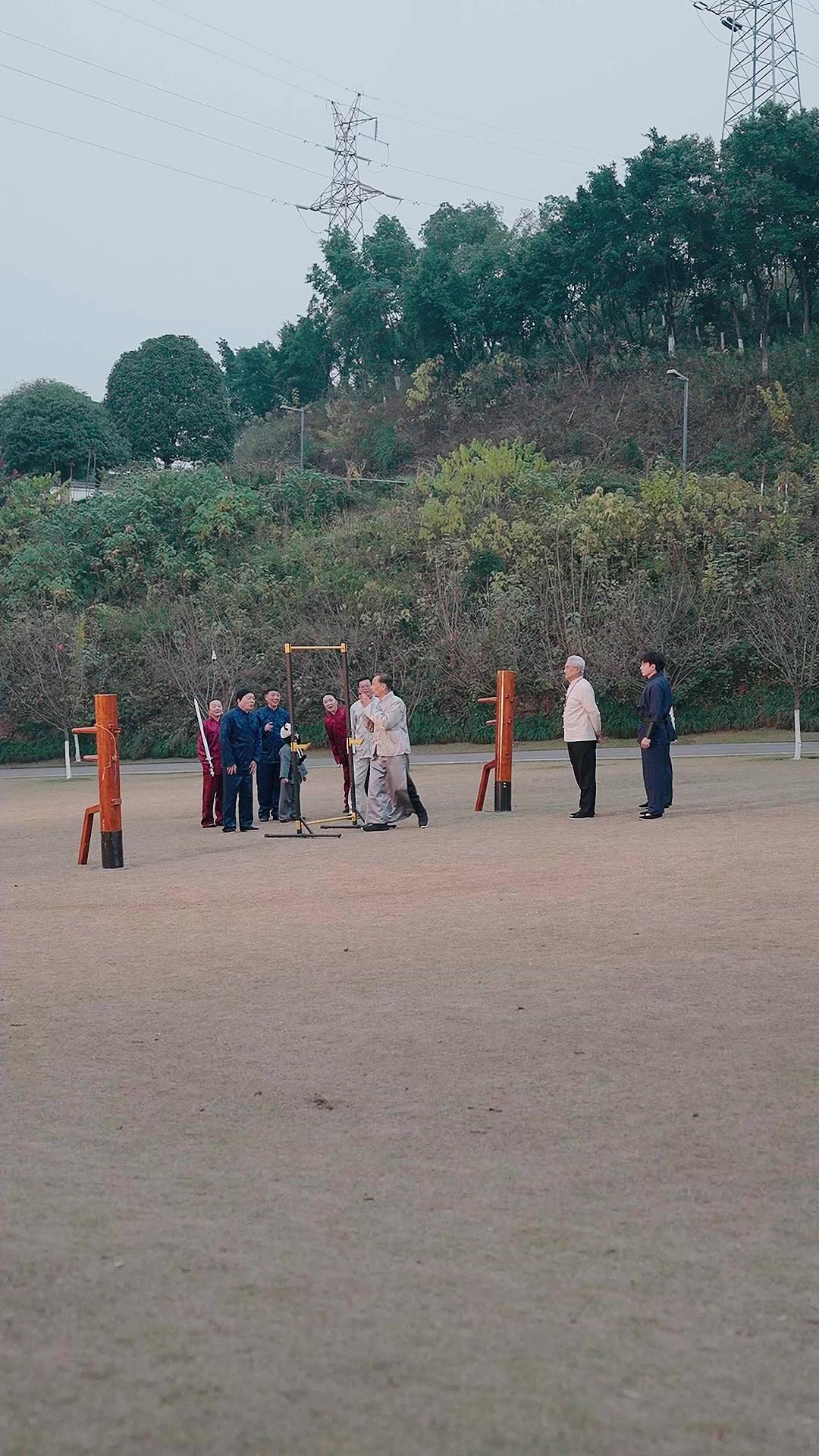 The aftermath is quieter, more profound. Master Chen addresses the group, his voice calm, measured. He speaks of *wu wei*—effortless action—not as philosophy, but as lived truth. He gestures toward Xiao Li, who now stands beside the pole, not as a student, but as a witness. The younger disciples exchange glances, some nodding, others frowning, processing what they’ve seen. One of them, a young man named Wei, steps forward and bows deeply to Kong Fu Leo. Not out of deference, but gratitude. Kong Fu Leo returns the bow, lower, slower, his skirt pooling around his feet like water finding its level.