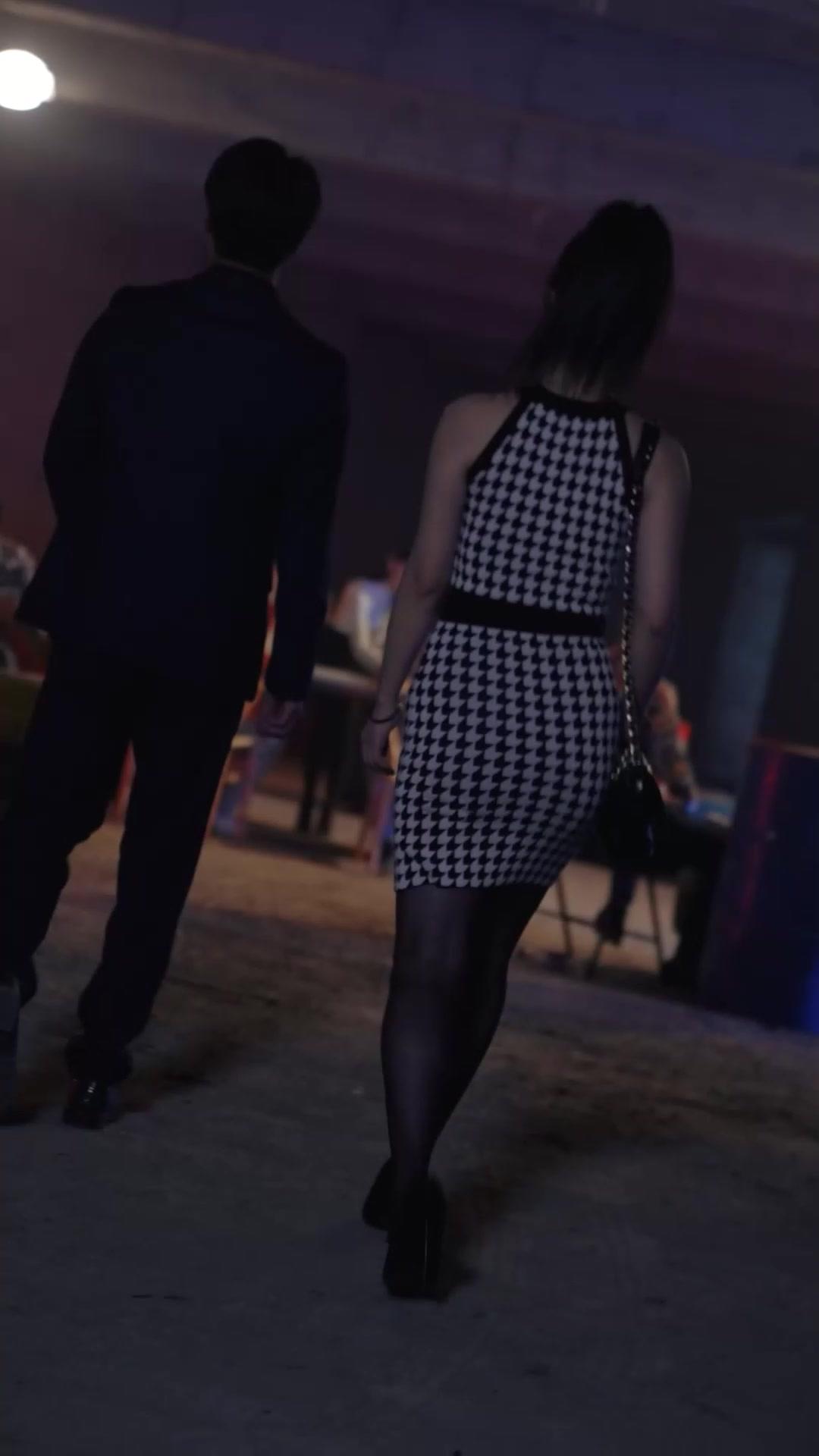 In the dim, concrete belly of what feels like an abandoned warehouse—lit only by flickering torches, neon rods, and the cold blue wash of overhead spotlights—the tension doesn’t just simmer; it *cracks* like dry earth under pressure. This isn’t a casino. It’s a stage where every glance is a weapon, every gesture a confession. And at its center stands Lin Xiao, the woman in the houndstooth dress—not because she’s flashy, but because she’s *unmoved*. Her black-and-white pattern isn’t fashion; it’s armor. She walks with heels that click like a metronome counting down to reckoning, her chain-strapped bag swinging like a pendulum between defiance and discretion. Behind her, Chen Wei follows—not as a protector, but as a man trying desperately to *belong* in a world he’s clearly outmatched by. His pinstripe suit is sharp, yes, but his hands betray him: they twitch, clench, open again, as if rehearsing apologies he’ll never speak aloud. He keeps glancing at Lin Xiao, not with desire, but with dread—like he knows she’s about to step into fire and he’s still holding the match.