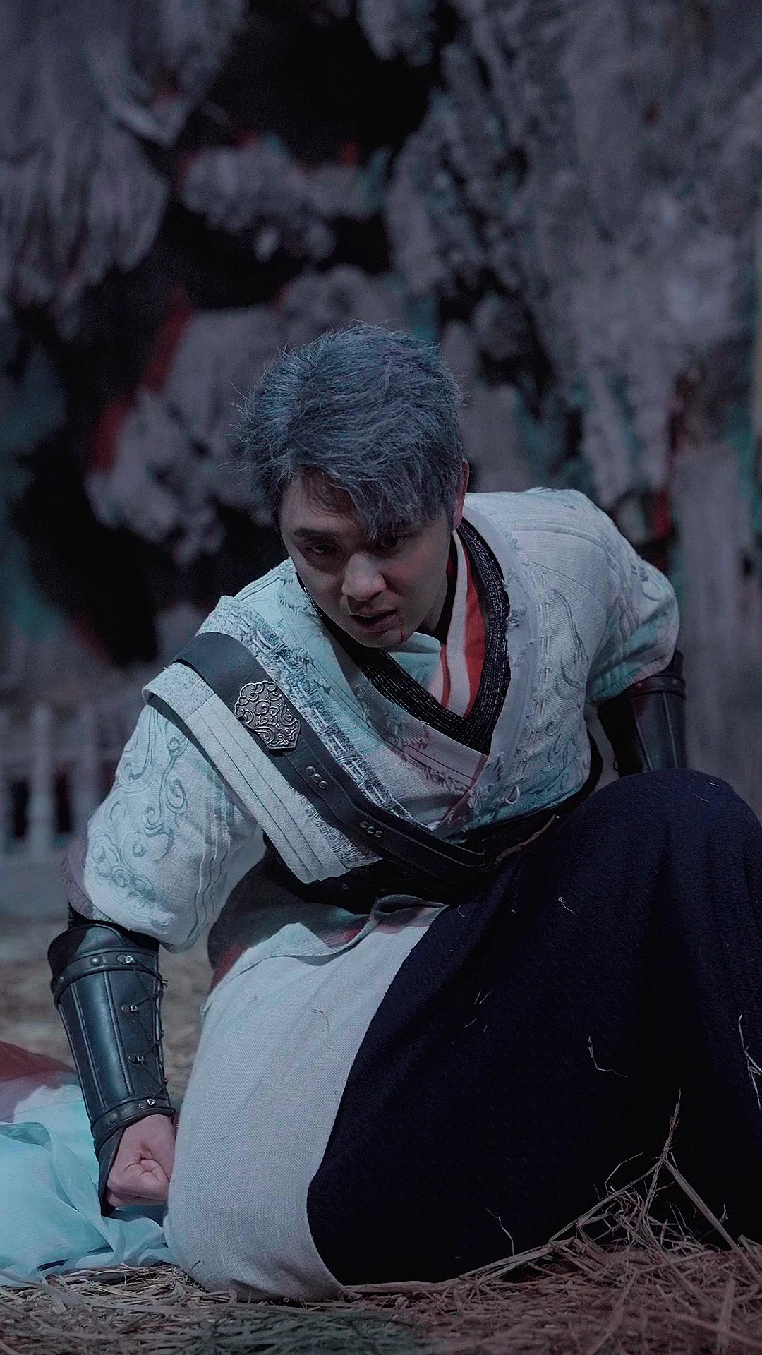 In the dim, blood-tinged cavern where straw litters the floor like forgotten prayers, a story unfolds—not of grand battles or world-shaking destinies, but of quiet desperation, fractured loyalty, and the unbearable weight of mercy. This is not the mythic saga of a warrior who conquers empires; this is the raw, trembling pulse of a man named Li Wei, whose silver-streaked hair and torn white robes speak louder than any banner. He kneels—not in submission, but in exhaustion, his left arm braced against the ground, leather vambrace scuffed and cracked, as if it has absorbed more blows than flesh ever could. A thin line of crimson traces his jawline, not fresh, but stubborn—like a memory he cannot wash away. His eyes, wide and unblinking, dart between two figures: one a child, small and broken, clutching a red tiger doll with one eye stitched shut; the other, a man with rust-red hair and a grin that flickers between cruelty and sorrow, holding a blade not yet sheathed. This is the heart of ‘Legendary Hero’—not the hero’s triumph, but the moment before the choice that will define him.