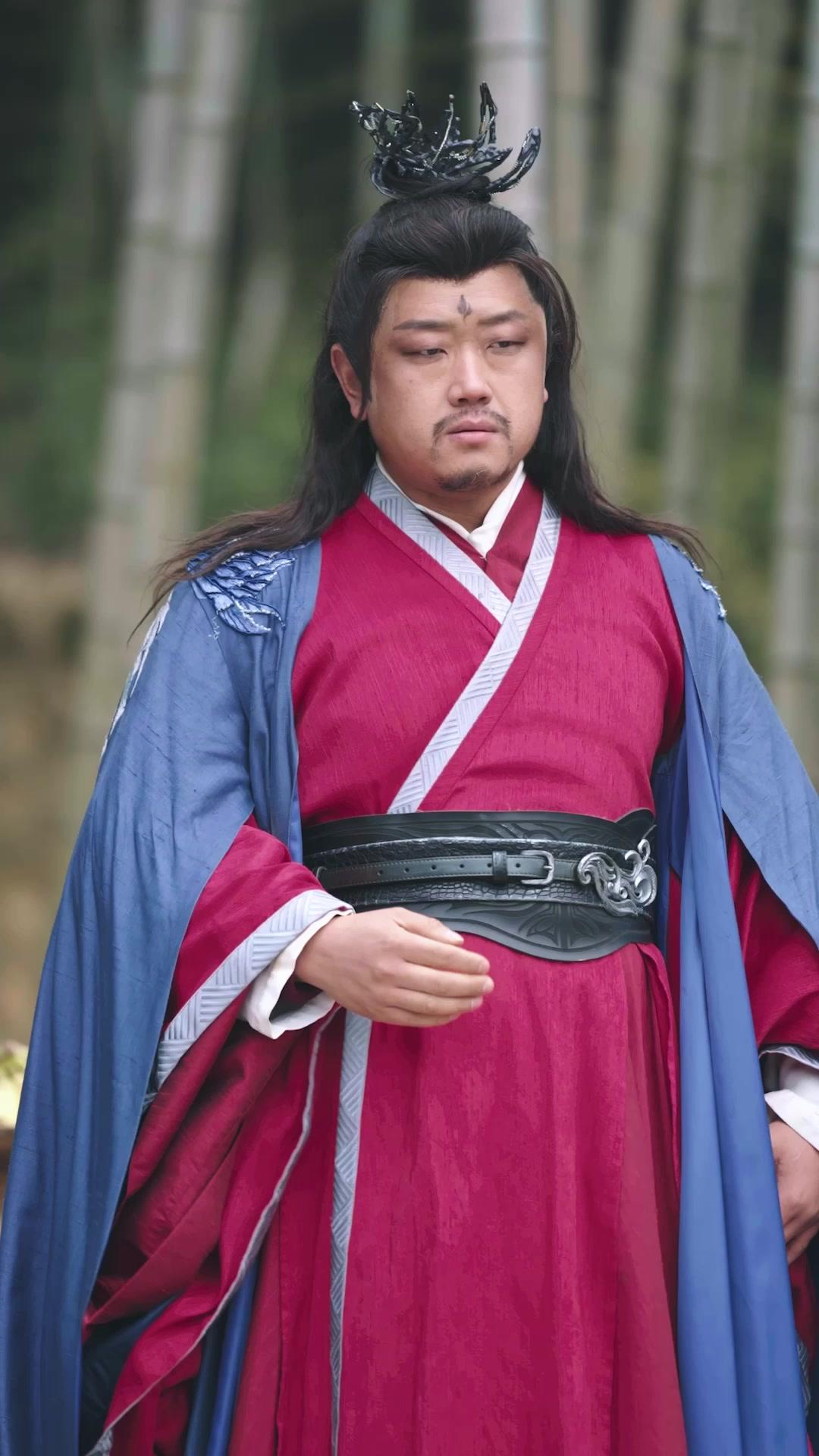 Let’s talk about the quiet storm brewing in *My Enchanted Snake*—specifically, the scene where the crimson-robed figure, known only as Lord Xue Feng, stands like a statue carved from regret. His attire is theatrical but precise: deep vermilion robes layered under a cobalt-blue outer cloak, embroidered with silver phoenix motifs that shimmer faintly even in the overcast light of the bamboo grove. A black, spiky crown rests atop his high-top knot—a symbol not of sovereignty, but of self-imposed exile. He doesn’t speak much in this sequence, yet every micro-expression tells a story. His eyes narrow slightly when he glances toward the fallen woman in black, lying half-slumped against a mossy boulder. His fingers twitch near his belt buckle—not in fear, but in hesitation. That subtle gesture says more than any monologue could: he knows what happened. He *allowed* it.