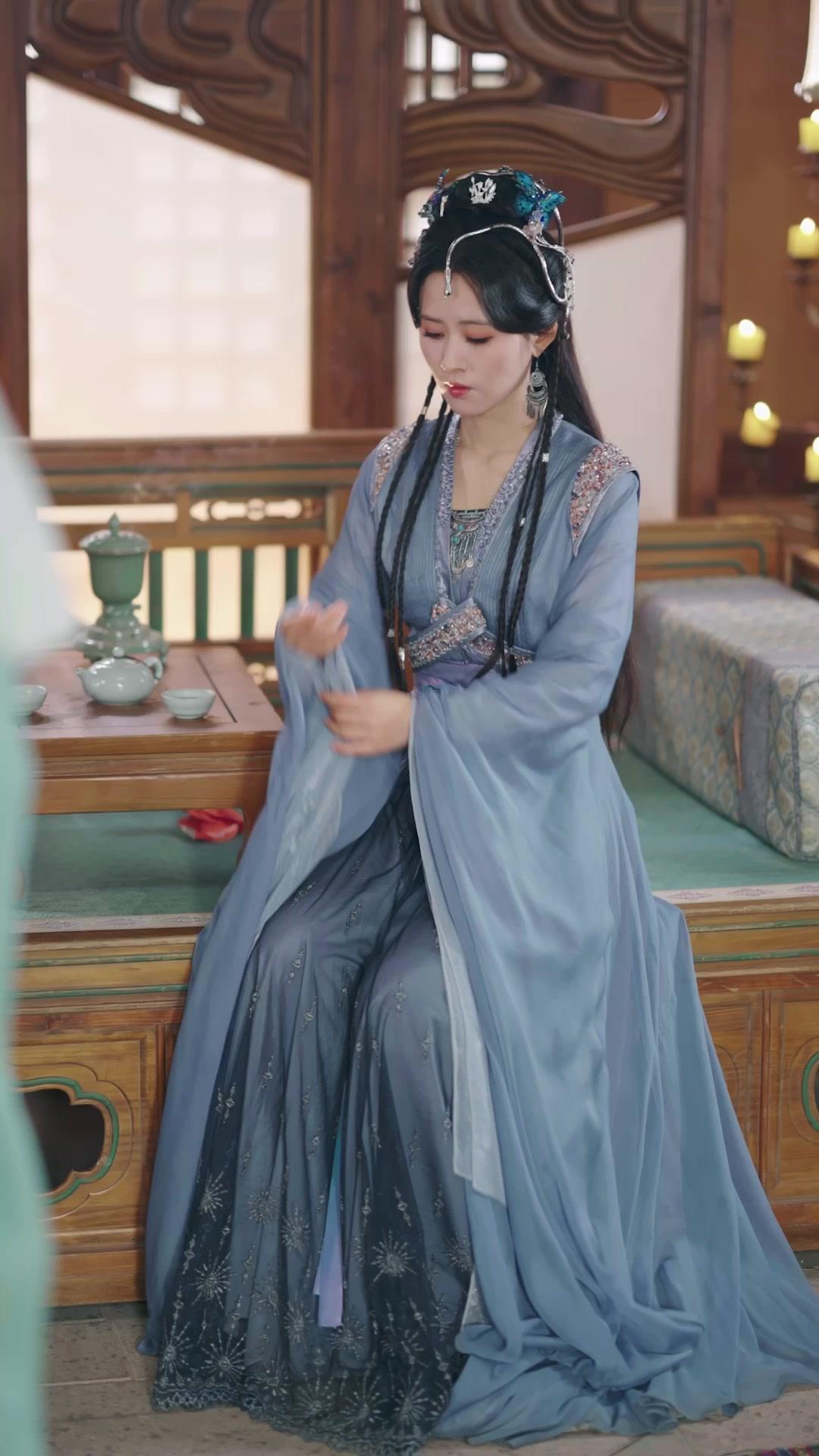 Su Wan, standing opposite her in layered indigo gauze, her own hair adorned with delicate blue butterflies and serpentine silver pins that seem to coil around her temples like living things, listens with the stillness of a predator assessing prey. Her posture is composed, almost regal—but her fingers, clasped low at her waist, betray her. They twitch. Not violently, but with the subtle tremor of a bowstring drawn taut. Her earrings—long, crescent-shaped silver filigree with dangling tassels—catch the light each time she tilts her head, a visual metronome marking the rhythm of her internal debate. Is she weighing Li Xue’s words? Or calculating how much of herself she can afford to reveal before the mask slips?