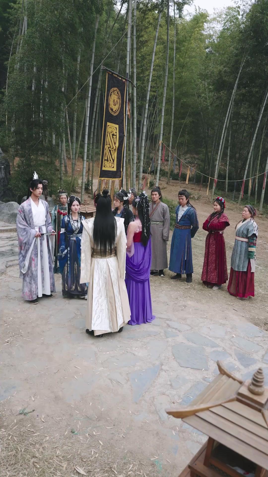 There’s a moment—just two seconds, maybe less—where everything changes in *My Enchanted Snake*. Not when the sword ignites, not when the purple smoke rolls in, but when Ling Yue lifts her hands. Not in surrender. Not in attack. But in *invitation*. Her palms face upward, fingers relaxed, wrists turned just so that the silver tassels dangling from her sleeves catch the light like falling stars. And in that instant, the entire dynamic of the scene flips. Up until then, Xiao Chen had been the center—the golden boy, the heir apparent, the one everyone watched. But the second Ling Yue moves, the camera *leans in*, not toward him, but toward her. The background blurs. The banners fade. Even the bamboo stalks seem to tilt inward, as if drawn by the quiet gravity of her gesture.