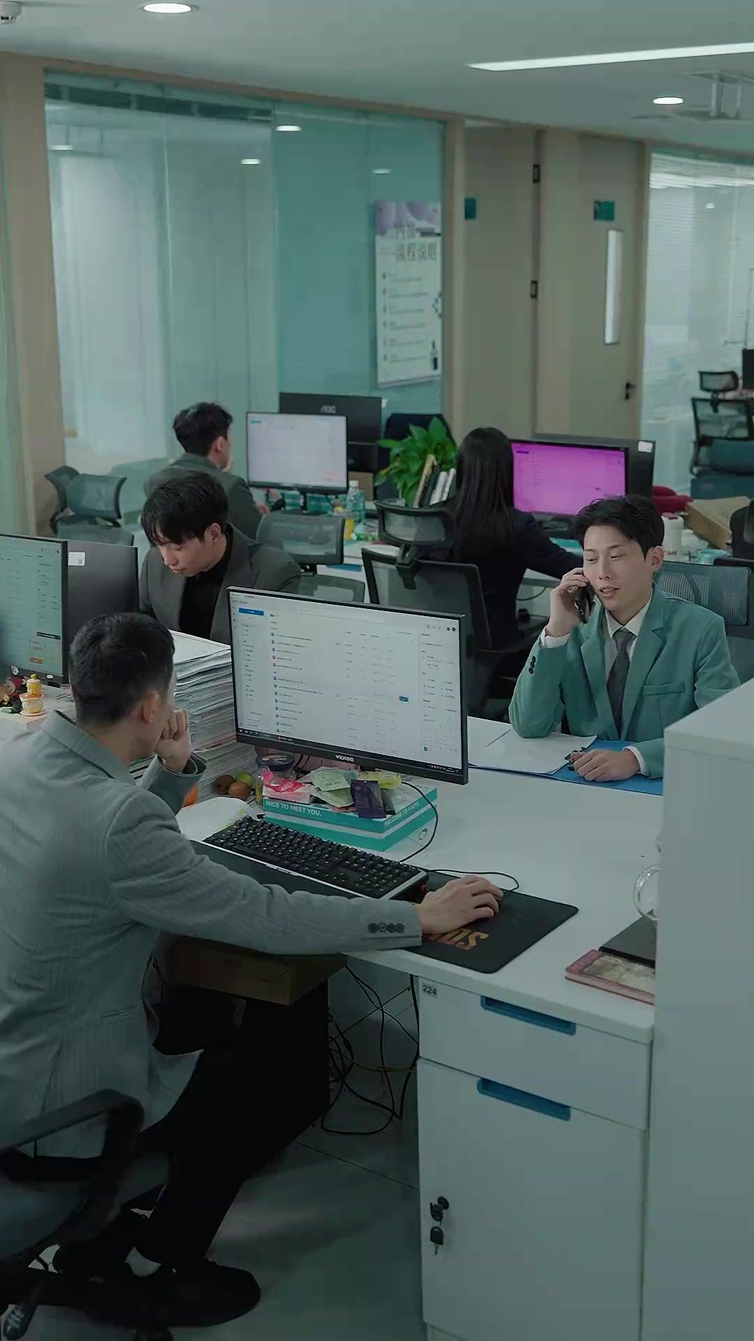 Meanwhile, in the office, Zhao Le’s transformation is quieter but no less profound. His teal suit—initially a sign of youthful confidence—now reads as absurd, almost costume-like. When he hangs up the phone, his posture changes: shoulders drop, chin lifts, eyes narrow. He’s not processing information anymore. He’s preparing for war. The way he grips the phone—knuckles white, thumb hovering over the screen—suggests he’s about to make a choice that can’t be undone. Then comes the entrance of the black-blazer woman. Let’s call her Lin Ya, for the sake of clarity—though the show never names her outright, her presence demands a name. Her outfit is armor: structured shoulders, cinched waist, belt buckle gleaming like a challenge. The crystals on her sleeves catch the overhead lights, scattering prisms across Zhao Le’s face. She doesn’t smile. She doesn’t frown. She simply *exists* in his space, and the office air grows dense around them. Colleagues freeze mid-typing. A coffee cup hovers halfway to a mouth. Time dilates. This is the moment *My Journey to Immortality* shifts from workplace drama to mythic confrontation. Lin Ya isn’t here to discuss KPIs. She’s here to remind Zhao Le of a debt he didn’t know he owed—a debt written not in contracts, but in bloodlines and buried secrets.
