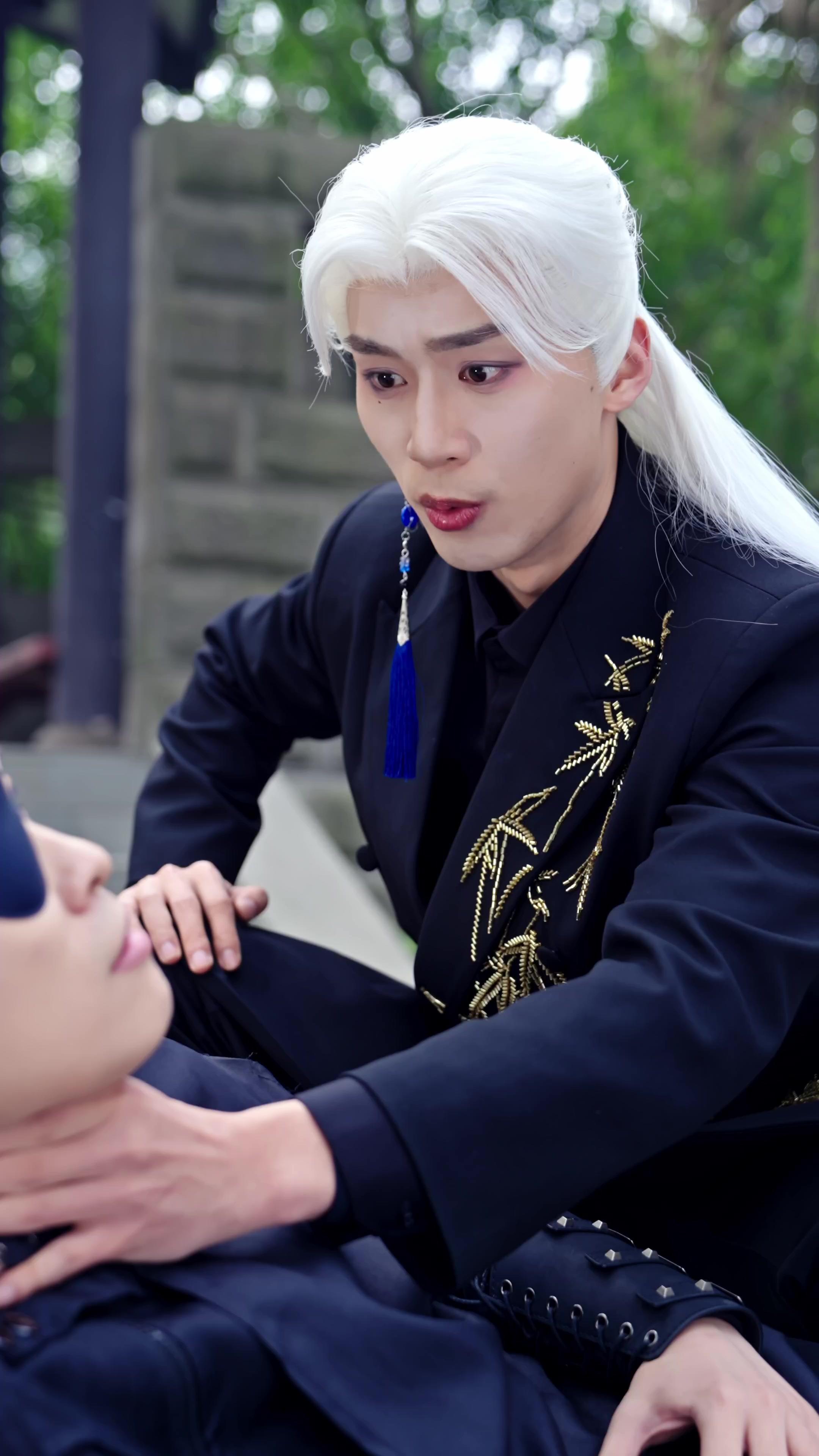 Let’s unpack the duality at play here. Li Wei — yes, that’s his name, confirmed in the subtitle scroll during the pavilion standoff — exists in two modes. Mode One: the Silver Sentinel. Long white hair bound low, gold-threaded black coat, blue tassel earring that sways like a metronome counting down to destiny. His movements are precise, economical, almost ritualistic. When he crouches beside the fallen man, his fingers don’t tremble. His voice, when he speaks (though we don’t hear the words), is low, resonant — the kind of tone that makes stone feel uneasy. He’s not angry. He’s *disappointed*. As if the universe has failed a test he didn’t know he’d set.