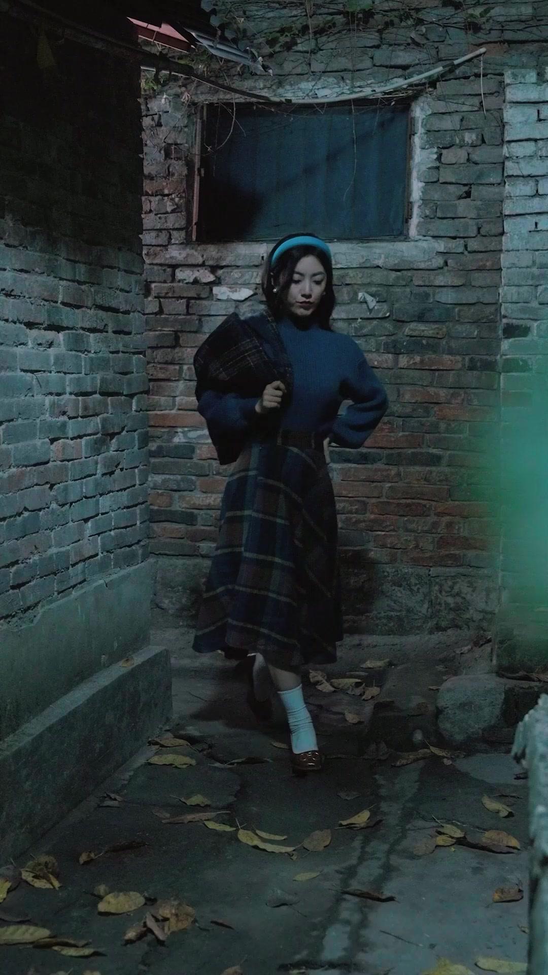 In the dim, moss-stained alley of a forgotten courtyard—brick walls cracked like old bones, fallen leaves clinging to damp concrete—the first scene of ONE MORE LIFE IN 1984 unfolds with a quiet urgency. A young woman, Lin Xiaoyue, strides forward in a navy ribbed sweater, her plaid skirt swirling around knees wrapped in white socks and glossy brown shoes. Her turquoise headband is not just an accessory; it’s a declaration—a splash of modernity against the sepia-toned decay of the setting. She carries a folded wool coat over one arm, fingers gripping it as if it were armor. Behind her, almost swallowed by shadow, emerges Chen Wei, his striped shirt slightly rumpled, tie askew, eyes wide with something between alarm and awe. He doesn’t speak at first. He watches. And that silence speaks volumes.