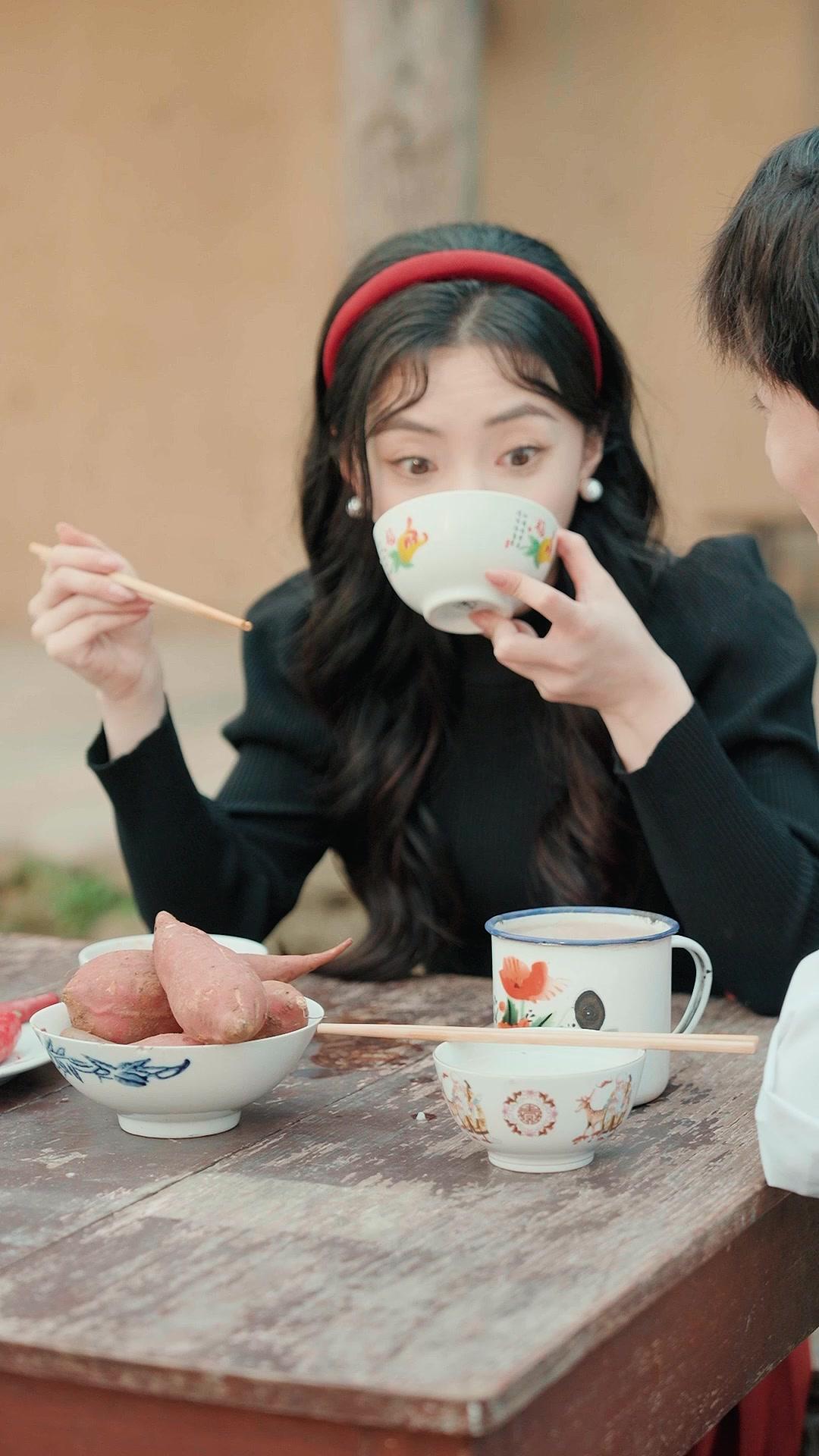 In the quiet courtyard of a weathered rural home, where earthen walls bear the scars of time and dried chili peppers hang like forgotten promises, Lin Xiaoyu sits across from Chen Wei—two figures caught in the delicate dance of unspoken affection. Her red headband, bold against her black ribbed turtleneck, isn’t just an accessory; it’s a declaration. A signal. She sips from a floral enamel mug, her fingers wrapped around the handle with practiced ease, but her eyes never leave him—not even when she leans forward, chopsticks hovering mid-air, as if the act of eating has become secondary to the act of *seeing*. Chen Wei, in his brown sweater vest over a crisp white shirt, remains still, almost too still. His posture is upright, his hands folded neatly on the table, yet his gaze flickers—first at the sweet potatoes in the blue-and-white bowl, then at the plate of sliced red chilies, and finally, reluctantly, back to her. There’s no dialogue in these early frames, yet the silence hums louder than any argument. Every gesture carries weight: the way Lin Xiaoyu lifts her chin when she speaks, the slight tilt of Chen Wei’s head when he listens, the way her pearl earrings catch the afternoon light like tiny moons orbiting a sun she refuses to name. This isn’t just a meal—it’s a ritual. A test. And the children watching from the doorway? They’re not mere bystanders. The younger girl, Mei, in her brown-and-amber checkered shirt, grips the stone ledge with small, determined hands, her expression shifting from curiosity to mischief to something deeper—recognition. Behind her, older sister Li Na grins, eyes crinkling, already knowing more than she should. That grin says everything: *She’s going to kiss him.* And she does. Not impulsively, but deliberately—rising, smoothing her rust-red pleated skirt with its gold-link belt, stepping close enough that her sleeve brushes his shoulder before her hands find his neck. Her touch is firm, intimate, almost possessive. Chen Wei flinches—not in rejection, but in surprise, in surrender. His breath catches. His lips part. For a heartbeat, the world narrows to the space between their faces, the scent of roasted sweet potato and damp earth mingling in the air. Then—*snap*—he pulls away, startled, embarrassed, perhaps even afraid. Not of her, but of what her boldness reveals: that he’s been holding his breath for longer than he realized. Lin Xiaoyu doesn’t retreat. She smiles—not the coy smile of a girl, but the knowing smile of a woman who has already won the first round. She turns, her skirt swirling, and walks toward the doorway where the girls wait. Her movement is graceful, unhurried, as if she’s already moved on to the next phase of her plan. Meanwhile, Chen Wei stands alone at the table, adjusting his collar, his fingers lingering at the base of his throat—the exact spot where her hands had been. His expression softens, then tightens again. He looks after her, not with longing, but with dawning realization: this isn’t courtship. It’s conquest. And he’s already surrendered. Later, in the bustling market alley—where bamboo awnings sag under the weight of gossip and woven baskets clatter against wooden carts—Lin Xiaoyu reappears, transformed. The red headband is gone, replaced by a vibrant teal one that matches her ribbed sweater. She walks arm-in-arm with Li Na and Mei, her posture confident, her voice warm as she greets neighbors. But watch her eyes. They scan the crowd—not with joy, but with vigilance. When an older woman in a plaid coat gestures sharply, Lin Xiaoyu’s smile doesn’t waver, but her shoulders tense. When another woman touches her own cheek, mimicking a slap, Lin Xiaoyu’s gaze hardens, just for a second. These aren’t random interactions. They’re echoes. Reminders. The market isn’t just a place to buy eggs or vegetables; it’s a stage where reputations are whispered, alliances tested, and past sins resurrected. One woman, wearing a floral-patterned jacket with traditional frog closures, watches Lin Xiaoyu with undisguised suspicion—her brow furrowed, her lips pressed thin. Another, in a geometric-knit cardigan, laughs too loudly, her hand covering her mouth as if to hide the truth she’s just spoken. Lin Xiaoyu absorbs it all, her composure unbroken, but her grip on Mei’s shoulder tightens—just enough to reassure, or perhaps to anchor herself. This is the genius of ONE MORE LIFE IN 1984: it understands that in a society where every glance carries consequence, the most dangerous weapon isn’t a shout, but a silence held too long. Lin Xiaoyu doesn’t need to argue. She simply *exists*—boldly, beautifully, unapologetically—and in doing so, forces everyone around her to confront what they’ve tried to bury. Chen Wei, meanwhile, remains absent from the market scene. His absence speaks volumes. Is he avoiding her? Or is he preparing—for what? A confrontation? A confession? The final shot lingers on his face, half in shadow, his hand still resting on his collar, as if trying to remember the exact pressure of her fingers. That moment—so small, so fleeting—is the heart of ONE MORE LIFE IN 1984. It’s not about grand gestures or dramatic declarations. It’s about the tremor in a hand, the shift in a gaze, the way a red headband can become a banner of rebellion in a world that demands conformity. Lin Xiaoyu doesn’t ask for permission to love. She takes it. And in taking it, she rewrites the rules—not just for herself, but for everyone watching from the doorway, the market stall, the edge of the frame. The real question isn’t whether Chen Wei will finally speak. It’s whether he’ll be brave enough to listen when she does. Because in ONE MORE LIFE IN 1984, love isn’t found. It’s claimed. And Lin Xiaoyu? She’s already staked her claim.
