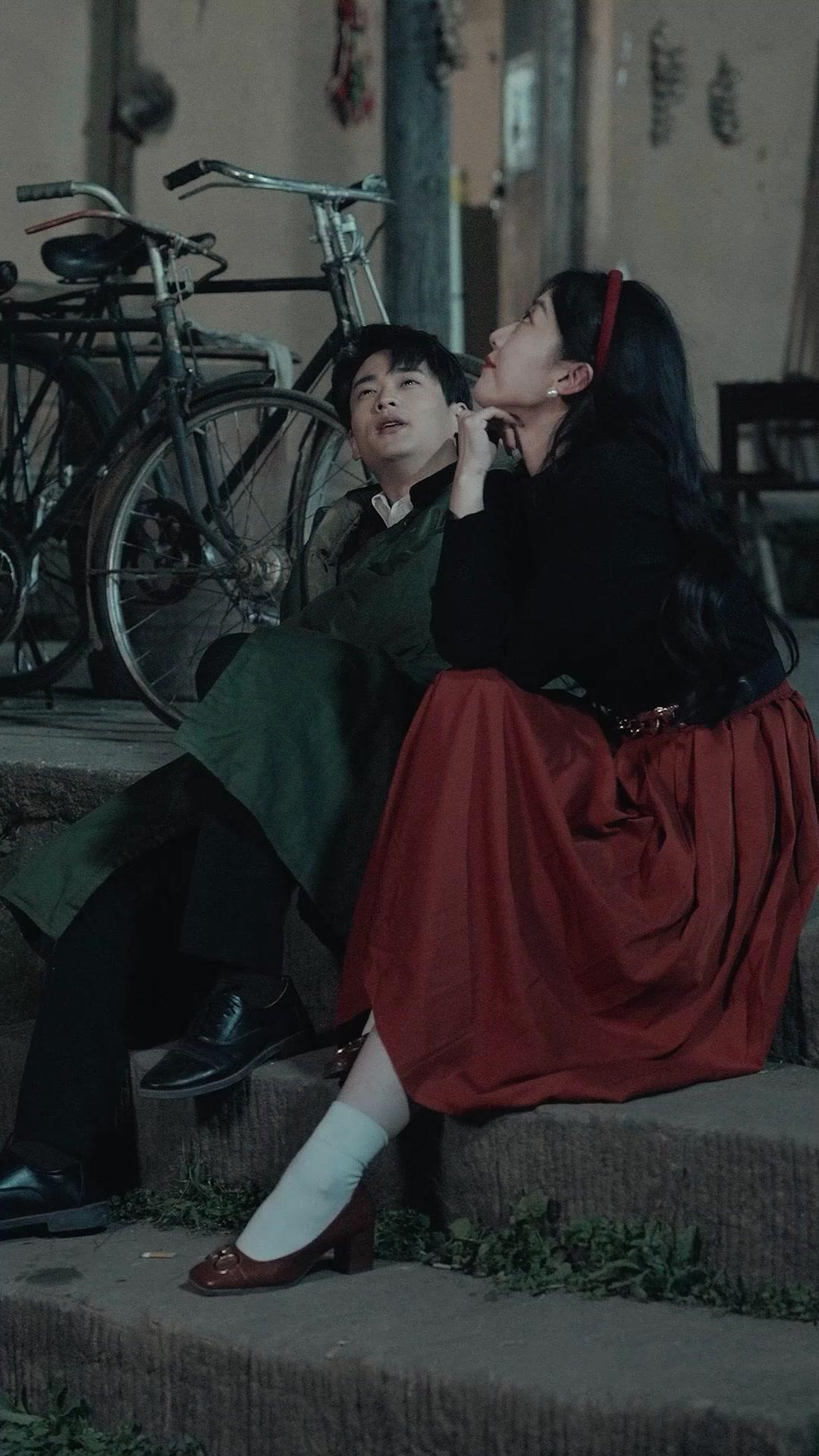 Let’s talk about the silence before the laughter. Not the awkward kind—the kind that settles like dust in an abandoned room—but the charged, expectant silence that hangs just before something irreversible happens. In ONE MORE LIFE IN 1984, that silence belongs to Lin Xiao and Chen Wei, seated on those uneven stone steps, the kind that have been worn smooth by generations of feet rushing toward duty or fleeing regret. The bicycles behind them aren’t just background dressing; they’re narrative anchors. One, with its bent fender and faded blue paint, belongs to Chen Wei—its condition mirroring his current state: functional, but barely holding together. The other, leaner and polished, is newer, perhaps borrowed, perhaps reclaimed. It’s the kind of bike you’d use to deliver a message you didn’t want traced back to you. Lin Xiao’s posture is deceptively casual—leg crossed over knee, heel resting lightly on the step below, white sock peeking out from beneath her rust-red skirt like a secret. But her hands tell a different story. One rests on her thigh, steady as stone. The other lifts, fingers brushing her temple, then her ear, then the pearl earring she wears—not ostentatious, but deliberate. Pearls in 1984 weren’t just jewelry; they were statements. A refusal to blend in. A whisper of a past life, or a future one she’s already drafting in her head. Chen Wei watches her, not with longing, but with assessment. His gaze lingers on the way her hair catches the dim light, on the slight tremor in her wrist when she adjusts her sleeve. He knows her rhythms. He’s memorized them. And yet, he hesitates. Because in this world, hesitation isn’t weakness—it’s strategy. Every word spoken aloud is a thread pulled from the tapestry of safety. So they sit. They breathe. They wait. And then—Lin Xiao speaks. Not loudly. Not even directly to him. She murmurs something about the weather, about how the wind carries the scent of wet earth and distant smoke. But her eyes are fixed on the horizon, where the last light bleeds into indigo. Chen Wei follows her gaze, and for a moment, they’re not two people on steps—they’re two witnesses to the end of an era. The moment cracks when Lin Xiao turns to him, her expression shifting from contemplative to conspiratorial. She smiles—not the wide, open grin she’ll wear later in the courtyard, but a narrow, knowing curve of the lips. It’s the smile of someone who’s just confirmed a suspicion. Chen Wei reacts instantly: he leans in, just slightly, and the fur lining of his coat brushes her shoulder. It’s not intimacy; it’s coordination. A signal. And then he stands. Not abruptly, but with the grace of someone who’s practiced exit strategies. He shrugs off the green coat, revealing the maroon vest beneath—a garment that speaks of warmth, yes, but also of hierarchy. In their community, vests weren’t worn for fashion. They were worn by those who had earned the right to stand slightly apart. Lin Xiao watches him rise, her expression unreadable, but her body language betrays her: she uncrosses her legs, shifts her weight forward, ready to move. When he offers her the coat—his coat—she doesn’t refuse. She takes it, drapes it over her shoulders, and the transformation is immediate. The black sweater, once stark against the red skirt, now nestles beneath the olive-green fabric, softening her edges, blending her into the landscape. She’s no longer just Lin Xiao. She’s *protected*. She’s *armed*. And as they walk away from the steps, the camera lingers on the empty space they left behind—the cigarettes crushed into the dirt, the bicycle wheel still trembling from Chen Wei’s earlier shift in weight, the faint imprint of her heel on the stone. That’s when the scene cuts. Not to dialogue. Not to exposition. To sunlight. To noise. To the courtyard. Where life, messy and loud and gloriously unscripted, resumes. A dozen villagers cluster around the weighing rig, sacks swaying like pendulums, baskets clattering as women jostle for position. There’s no order here—only rhythm. The older women, faces lined with decades of sun and sorrow, laugh with the abandon of girls half their age. One, in a floral apron tied tight at the waist, slaps her knee and doubles over, tears streaming—not from sadness, but from the sheer absurdity of it all. Another, younger, with braids coiled like springs, hoists a basket of green peppers overhead like a trophy, shouting something that makes the group erupt anew. And at the center of it all—Lin Xiao. She doesn’t join the fray. She *hosts* it. Standing in the doorway, hands on hips, she surveys the chaos with the calm of a conductor who knows every note will resolve. Her red headband is still perfect. Her belt still gleams. But now, there’s a looseness in her shoulders, a relaxation in her jaw that wasn’t there before. She’s not performing anymore. She’s *living*. And then—she steps forward. Not toward the crowd, but toward the edge of the frame, where a new figure emerges: a woman in a rust-polka-dot blouse, jeans faded at the knees, hair tied with a scarf that flutters in the breeze. Her entrance is quiet, but the effect is seismic. The laughter dips. Heads turn. Lin Xiao’s smile doesn’t falter, but her eyes narrow—just a fraction—and her fingers tighten on the edge of Chen Wei’s coat. This isn’t jealousy. It’s recalibration. The newcomer isn’t a threat because she’s beautiful or bold; she’s a threat because she represents a different kind of survival. One that doesn’t require coats or headbands or carefully timed silences. One that walks in plain sight and expects to be seen. The tension doesn’t escalate. It *transforms*. Lin Xiao doesn’t confront her. She invites her in—with a gesture, a tilt of the chin, a laugh that’s equal parts welcome and warning. And the crowd, sensing the shift, surges forward, pulling the newcomer into the fold, o