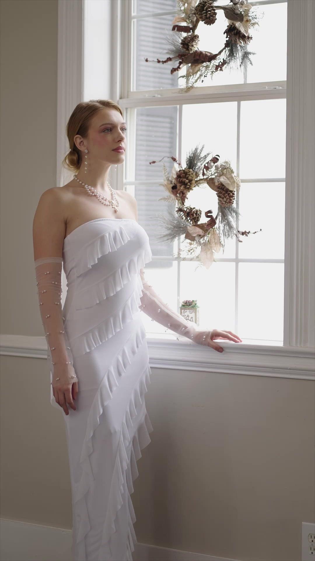 In the opening frames of *Ops! I Married with My Forgetful Ex-boyfriend*, Monica stands by a sunlit window like a porcelain figurine trapped in gilded glass—her white ruffled gown cascading in asymmetrical tiers, her sheer pearl-studded gloves clinging to arms that tremble not from cold, but from suppressed fury. The wreath of dried pine and feathers hanging beside her feels less like holiday decor and more like a funeral garland for autonomy. When her father, clad in that audacious burgundy velvet blazer—its lapels sharp as legal briefs—enters with the gravity of a CEO announcing a hostile takeover, the air thickens. His words are not proposals; they are ultimatums wrapped in silk: ‘Monica, this wedding is non-negotiable.’ He doesn’t ask. He declares. And then, with chilling precision, he adds, ‘and I will not let anyone sabotage it.’ The camera lingers on Monica’s face—not tearful, not broken, but calculating. Her eyes flicker upward, not toward him, but past him, as if already mapping escape routes through the architecture of obligation. This isn’t a bride preparing for vows; it’s a strategist assessing leverage points before the first move.