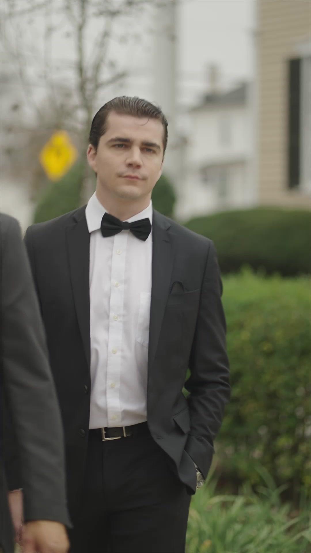 Meanwhile, the background characters are doing the real heavy lifting. The older man in the grey suit and burgundy shirt—likely Mr. Summers, the patriarch—grins like he’s watching a particularly satisfying chess move unfold. His line, ‘I’d expect you to put on a show,’ isn’t advice; it’s a reminder of duty. He’s not surprised. He’s *pleased*. Then there’s the young man in suspenders and khakis, standing beside the woman in black, who whispers, ‘That’s the Summers heiress. She hardly ever shows up to these things.’ And then, with quiet awe: ‘She’s breathtaking.’ That contrast—between absence and arrival, indifference and awe—is where *Ops! I Married with My Forgetful Ex-boyfriend* earns its emotional weight. Monica isn’t just late; she’s *reclaimed*. Her entrance isn’t punctual—it’s seismic. The garden path she walks isn’t paved with bricks; it’s laid with years of silence, missed birthdays, unopened letters. Every step she takes toward Daniel is a step away from the version of herself everyone assumed she’d become: distant, disengaged, irrelevant.