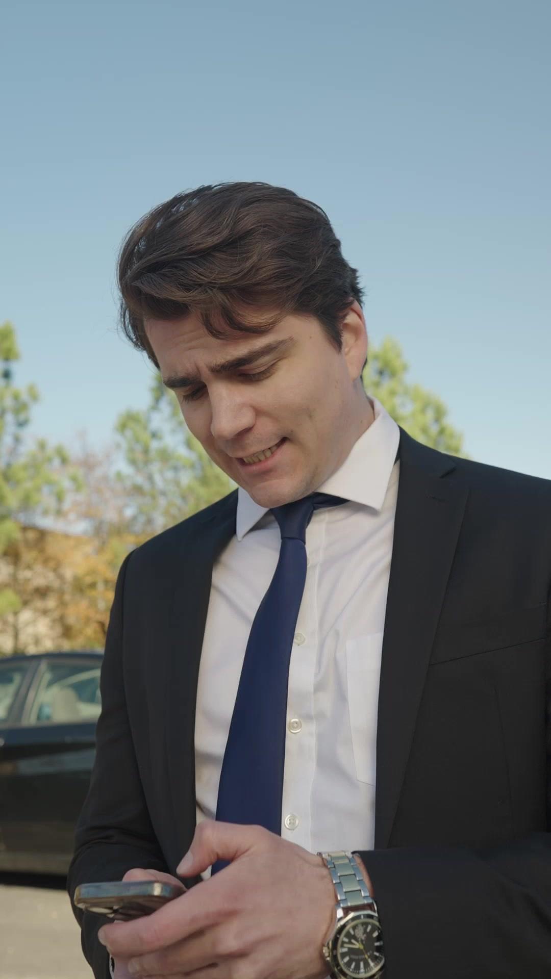 The opening shot of *Ops! I Married with My Forgetful Ex-boyfriend* is deceptively calm—a man in a tailored navy suit, crisp white shirt, and a silver watch glancing at his phone under a clear blue sky. But the tension is already coiled tight in his brow, in the way his fingers hover over the screen like he’s bracing for impact. His muttered question—‘Is this all my dad’s doing?’—isn’t rhetorical. It’s the first crack in the veneer of control, the moment the audience realizes this isn’t just a family reunion; it’s a high-stakes negotiation disguised as holiday cheer. And then comes Monica. Not introduced with fanfare, but through the quiet flicker of a smartphone screen lighting up with ‘Albert’—a name that carries weight, not warmth. Her expression when she sees the call? Not panic. Not excitement. A slow, deliberate exhale, as if she’s mentally preparing to step into a role she didn’t audition for. That’s the genius of *Ops! I Married with My Forgetful Ex-boyfriend*: it doesn’t tell you who the players are—it shows you how they move before they speak.