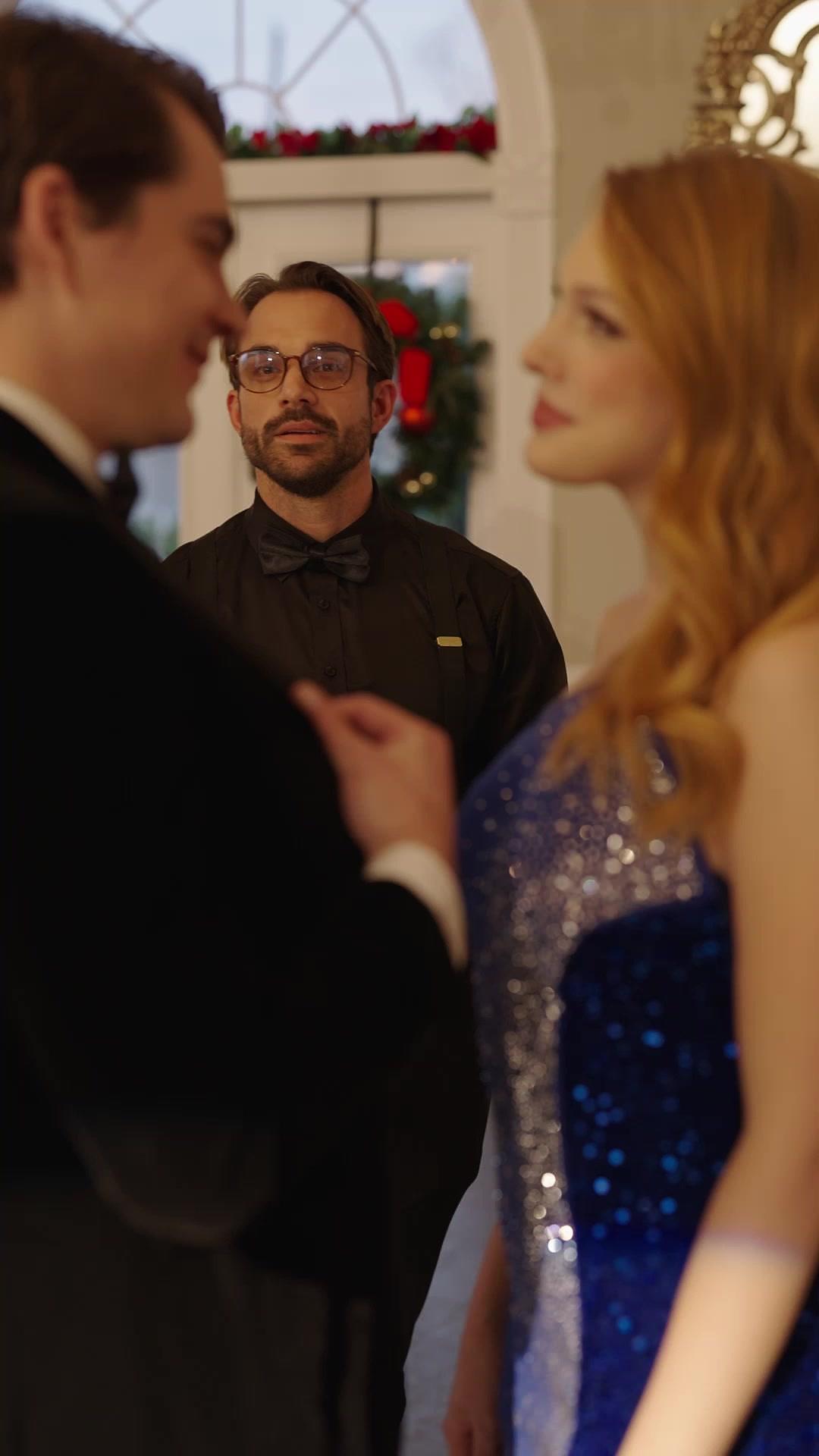 The setting is opulent, yes—gilded archways, red-and-green holiday garlands, soft chandeliers casting halos over sequined shoulders—but the real drama unfolds in the micro-expressions. Albert’s watch glints under the light as he adjusts his lapel, a nervous tic disguised as elegance. His apology—‘I’m sorry’—is delivered with a smirk that betrays zero remorse. He knows exactly what he’s doing. He’s not apologizing for cutting in; he’s apologizing for *reminding* Monica of something she’s been trying to forget. And when he adds, ‘Richard but—we’re in the middle of something here,’ it’s less a clarification and more a challenge. He’s not asking permission. He’s asserting presence. The camera lingers on Richard’s face—not angry, not even surprised—just… resigned. Like he’s seen this movie before and knows the script ends badly for him.