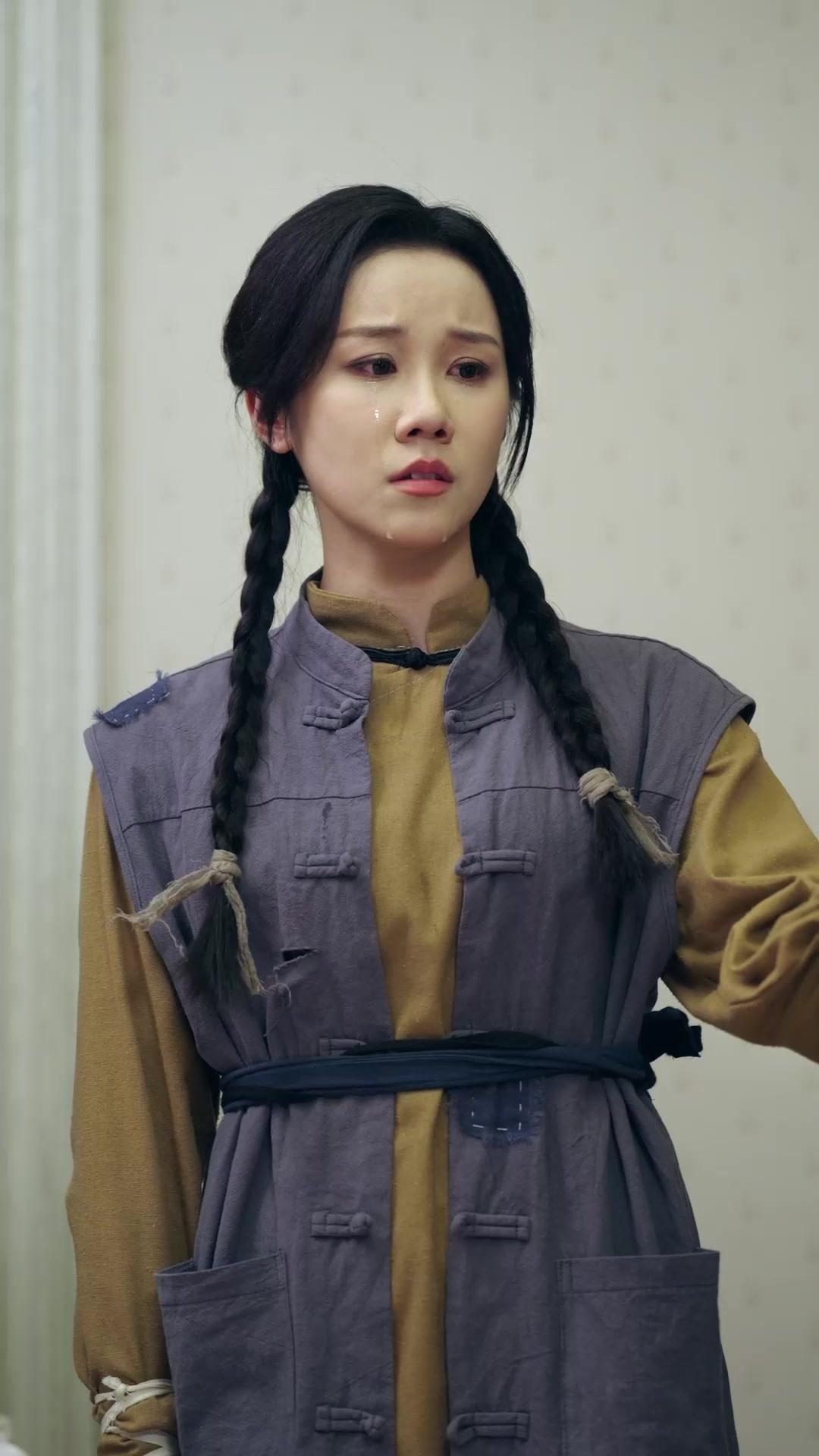Let’s begin with Lin Mei. From frame one, she is a study in contained collapse. Her posture is rigid, but not defiant—more like a tree that’s weathered too many storms and now stands bent, waiting for the next gust. Her twin braids, tied with rough twine, are not a fashion choice; they’re a declaration of austerity. The grey vest she wears is functional, utilitarian, even slightly oversized—as if she’s trying to disappear into it. Her sleeves are bound at the wrists with cloth strips, not for decoration, but for practicality: to keep them from fraying further, or perhaps to remind herself of limits. When she looks at Madame Su, her eyes don’t soften. They narrow, just slightly, as if scanning for deception. She’s been lied to before. She knows how silence sounds when it’s practiced.