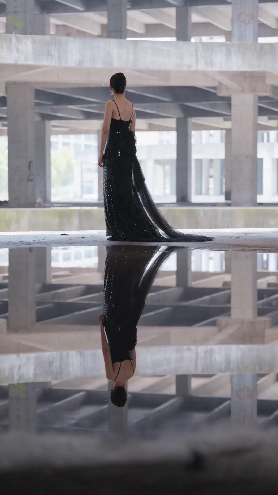 Let’s talk about water. Not as metaphor—but as *character*. In *Reborn, I Captured My Ex's Uncle*, the puddle isn’t just a visual gimmick; it’s the third protagonist. It holds memory. It distorts identity. It reveals what the surface hides. When our heroine—let’s call her Jing—stands at its edge in that glittering black gown, her reflection doesn’t mimic her. It *inverts* her. Upside down. Vulnerable. Trapped. Yet she doesn’t avoid it. She studies it. That’s the first clue: she’s not running from her past. She’s interrogating it. The concrete skeleton around her—exposed rebar, cracked floors, graffiti barely visible under layers of grime—feels less like a location and more like a psychological map. This is where dreams were poured and left to dry. Where promises hardened into regret. And now, she’s back, not to mourn, but to *audit*.