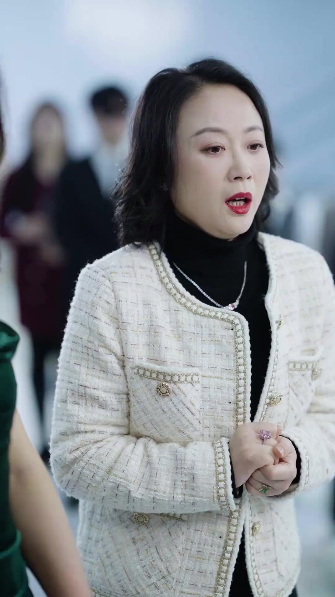 In the opulent, softly lit hall where marble floors reflect chandeliers like frozen constellations, *Reborn in Love* unfolds not as a romance—but as a psychological excavation. Every gesture, every glance, every tremor of the hand tells a story far deeper than the glittering gowns and tailored suits suggest. At the center of this emotional tempest stands Lin Mei, the woman in the cream tweed jacket—her posture rigid yet trembling at the edges, her red lips parted not in anger but in disbelief, as if she’s just realized the script she’s been reciting for years has been rewritten without her consent. Her fingers, adorned with a rose-cut amethyst ring and a vivid green emerald band, clasp and unclasp like a metronome counting down to rupture. She speaks—not loudly, but with the weight of someone who’s held silence too long. Her voice carries the cadence of practiced diplomacy, yet cracks when she places both hands over her chest, as though trying to physically contain the truth that’s now spilling out into the room.