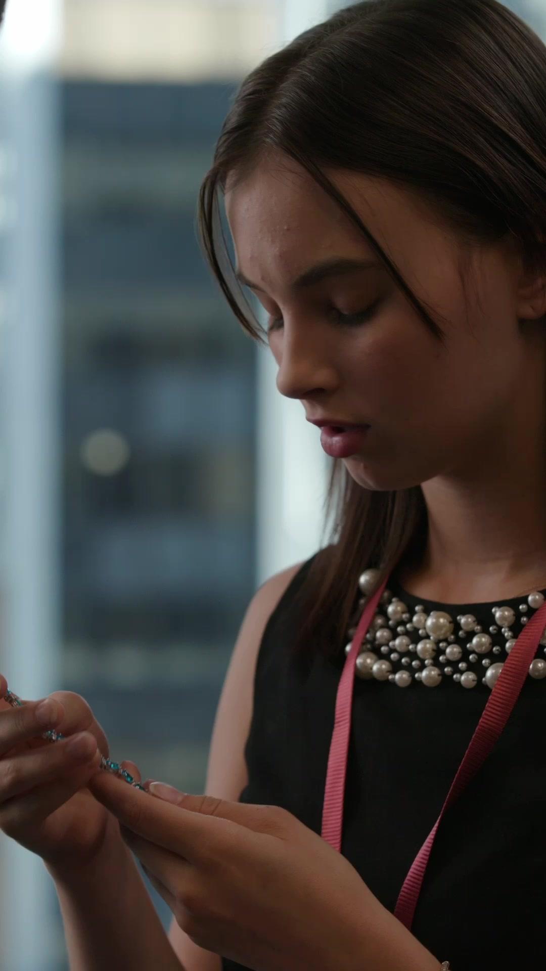 Meanwhile, in the lounge—a space designed for ‘casual collaboration’ but used mostly for whispered confessions—Chloe sits on a cream sofa, radiant and restless. Beside her, Lila, her friend and fellow junior strategist, leans in, fingers tracing the bracelet’s edge with the reverence of a curator examining a relic. Lila’s outfit is deliberately understated: ivory tank, black velvet trousers, multiple stacked bracelets of her own—each telling a story Julian wouldn’t know how to read. She asks, voice low, *‘Does it feel heavy?’* Chloe laughs, but it’s hollow. *‘It’s beautiful,’* she says, turning her wrist so the light catches the facets. *‘But it doesn’t fit right.’* Not physically—though the clasp does pinch slightly—but existentially. The camera zooms in: the turquoise stones gleam, but the metal setting shows a tiny scratch near the hinge, a flaw invisible unless you’re looking for it. That scratch, we later learn (in a flashback cut only hinted at), was made when Julian first held it—when he hesitated before handing it to Elena. The bracelet wasn’t meant for Chloe. It was meant for *her*. And now, it’s a ghost wearing a new skin.