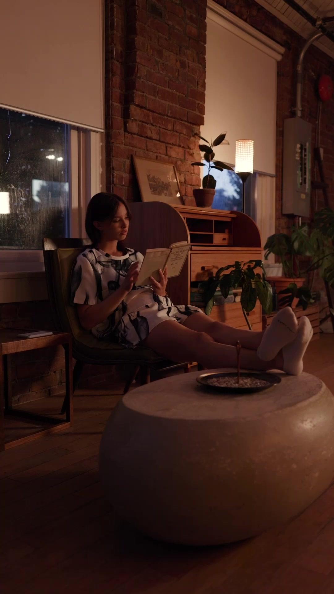 Let’s backtrack. The film opens not with action, but with stillness: Elena, alone, reading in a dimly lit loft apartment that smells of old paper and damp brick. She’s wearing a two-piece set that reads as artistic, intellectual—white base, black ink-like swirls, like a Rorschach test you can wear. Her socks are white, her feet bare on the stone ottoman, a small dish of loose-leaf tea beside her. She’s not relaxed. She’s bracing. The rain outside isn’t weather; it’s mood. Every drop hitting the windowpane is a countdown tick. Then the phone chimes. Aaron’s message—*Meet at James Manor? We need to talk*—is delivered with the cold efficiency of a subpoena. No ‘hope you’re well.’ No ‘sorry to bother you.’ Just business. And Elena’s reaction? She doesn’t gasp. She doesn’t curse. She simply exhales, closes the book, and places it down with the care of someone handling evidence. That’s when we know: this isn’t a conversation. It’s an interrogation.