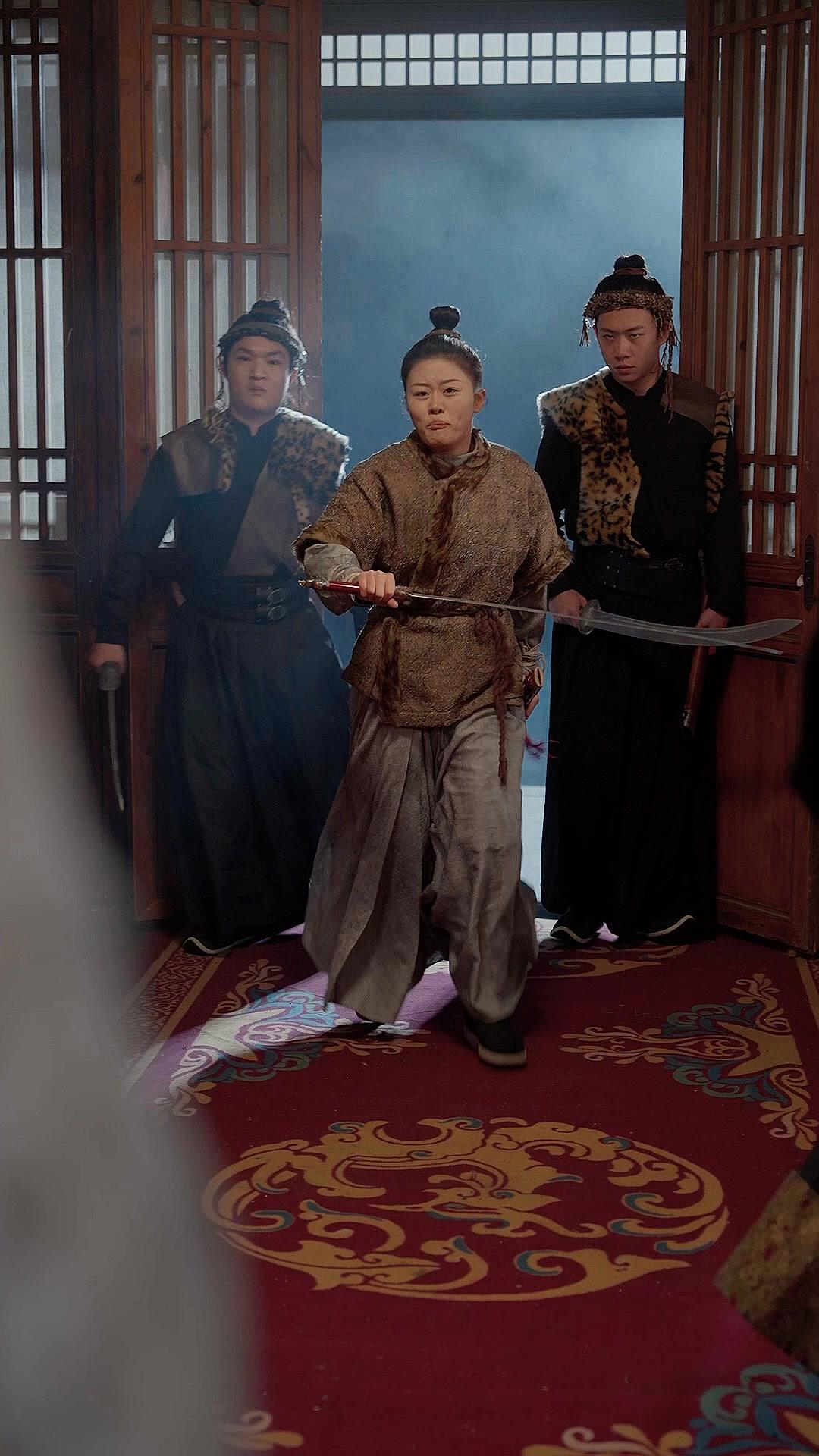 The choreography here is deceptively simple: no acrobatic flips, no wire-assisted leaps. Just raw, grounded motion. Chen Wei swings his sword with theatrical rage, but his footwork falters—his left knee buckles slightly as he overextends, a detail only visible in slow motion. And then, almost imperceptibly, Li Zhen shifts his weight—not to dodge, but to *invite*. The sword passes inches from his collarbone, and in that split second, Chen Wei’s expression changes: not triumph, but confusion. Because Li Zhen didn’t move to avoid the strike—he moved to expose the flaw in Chen Wei’s stance. A flaw born of emotion, not training. That’s when the second attacker, Guo Lin, steps forward, gripping two short blades, his face twisted in a snarl that borders on desperation. His attack is faster, more erratic, but also more predictable. He telegraphs his lunge by tensing his shoulders too early, a micro-tremor in his right wrist betraying his intent. Li Zhen doesn’t raise a hand. He simply exhales—and Guo Lin stumbles, not from force, but from misjudging the distance. His momentum carries him forward, and he crashes onto the rug, his own blade slipping from his grip and clattering beside Chen Wei’s fallen weapon.