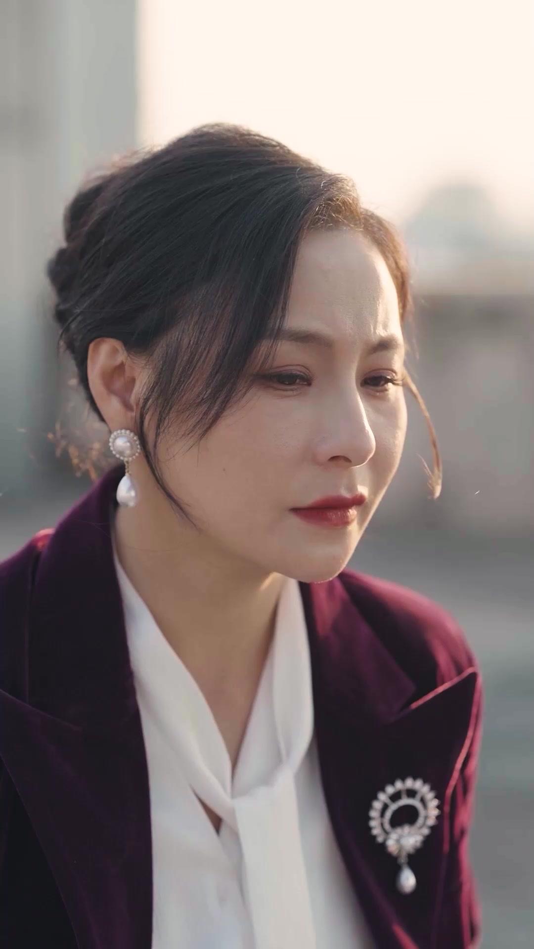 There’s a kind of silence that doesn’t come from absence—but from overload. In the rooftop confrontation of *Silent Tears, Twisted Fate*, every glance, every tremor in the hand, every unspoken word carries the weight of years compressed into minutes. The scene opens not with dialogue, but with texture: the velvet maroon blazer of Lin Mei, its brooch—a teardrop pearl suspended beneath a sunburst of crystals—catching the late afternoon light like a warning flare. Her hair is pulled back, tight, disciplined, as if she’s spent her life taming chaos with precision. Yet her eyes betray her: red-rimmed, pupils dilated, lips parted just enough to let out breaths that don’t quite reach her lungs. She isn’t angry. She’s *grieving*. Grieving a future she thought was sealed, a daughter she thought she understood, a truth she refused to see until it stood before her in a crimson gown and bare feet.