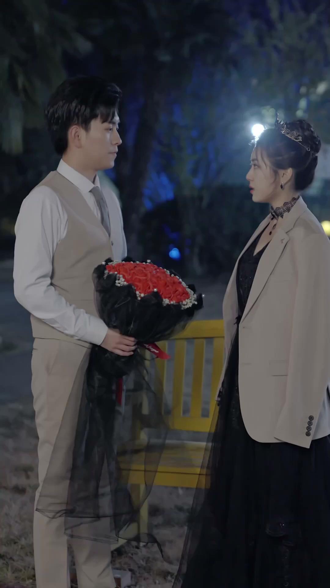 In Trading Places: The Heiress Game, the tension isn’t just in the proposal—it’s in her trembling lips and his hesitant grip on those red roses 🌹. She wears a crown like armor; he offers flowers like surrender. Every glance screams unspoken history. That third man lurking? Oh, he’s not just background—he’s the plot twist waiting to drop. Pure emotional warfare, served cold under streetlights. 💔✨