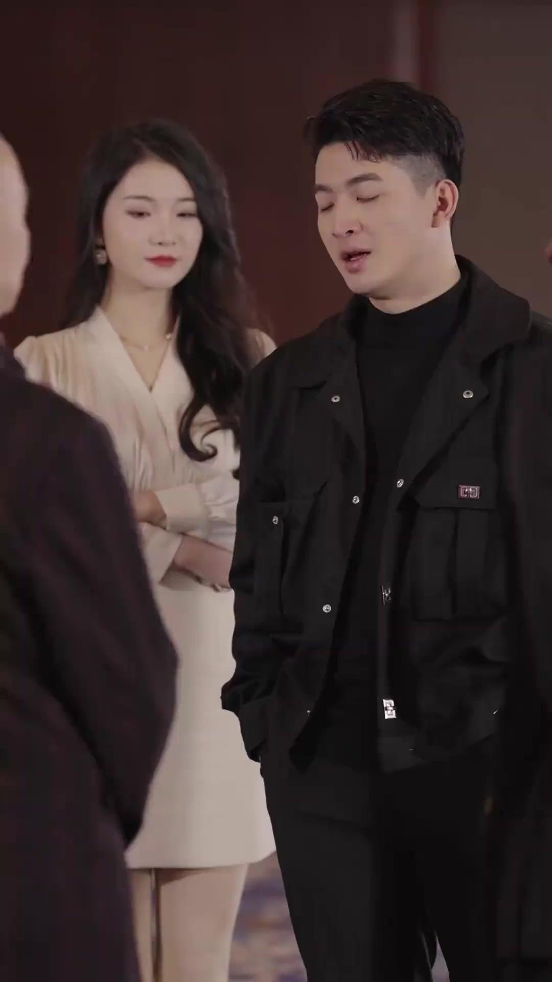 In the dimly lit banquet hall—carpeted in deep indigo with gold-threaded motifs, walls lined in polished mahogany—the air hums not with music or chatter, but with tension. This is not a celebration; it’s a tribunal disguised as a gathering. The camera lingers on faces like a forensic examiner, capturing micro-expressions that betray far more than words ever could. At the center stands Lin Zeyu, dressed in a stark black utility jacket over a turtleneck, his posture relaxed yet coiled, like a spring held just shy of release. His eyes—dark, steady, almost unnervingly calm—scan the room not as a guest, but as someone assessing threat vectors. Behind him, slightly out of focus but impossible to ignore, is Su Mian, her cream silk dress cinched at the waist with double pearl buttons, hands clasped delicately around a silver iPhone. Her earrings catch the light like tiny chandeliers, but her gaze is fixed on Lin Zeyu—not with affection, but with calculation. She knows something. Or suspects. And that suspicion is the quiet fuse beneath this entire scene.