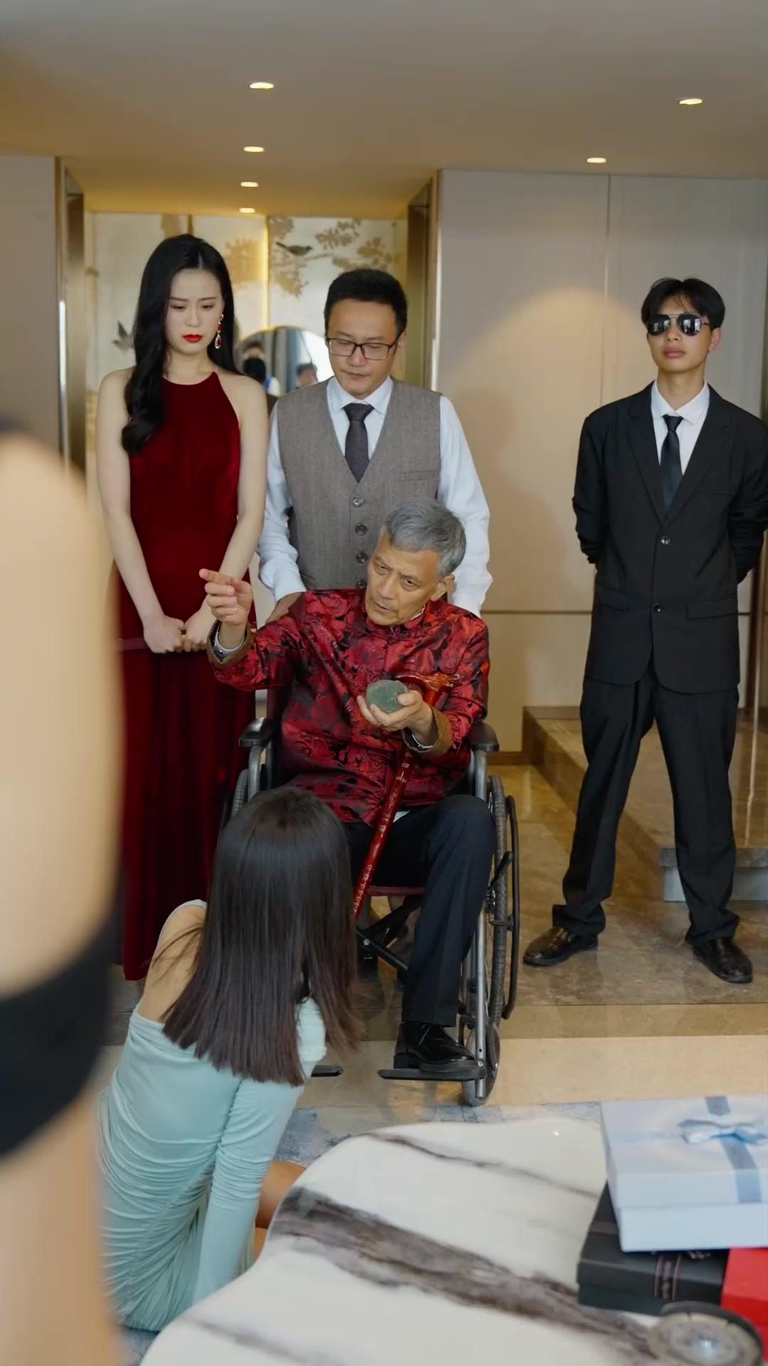 In *From Dumped to Billionaire Tycoon*, that unassuming green stone wasn’t just jade—it was a detonator. The elder’s trembling hands, the kneeling woman’s panic, the suited men’s frozen postures… all cracked open in one silent gesture. Power isn’t shouted here; it’s held, weighed, and *offered*. 🪨🔥