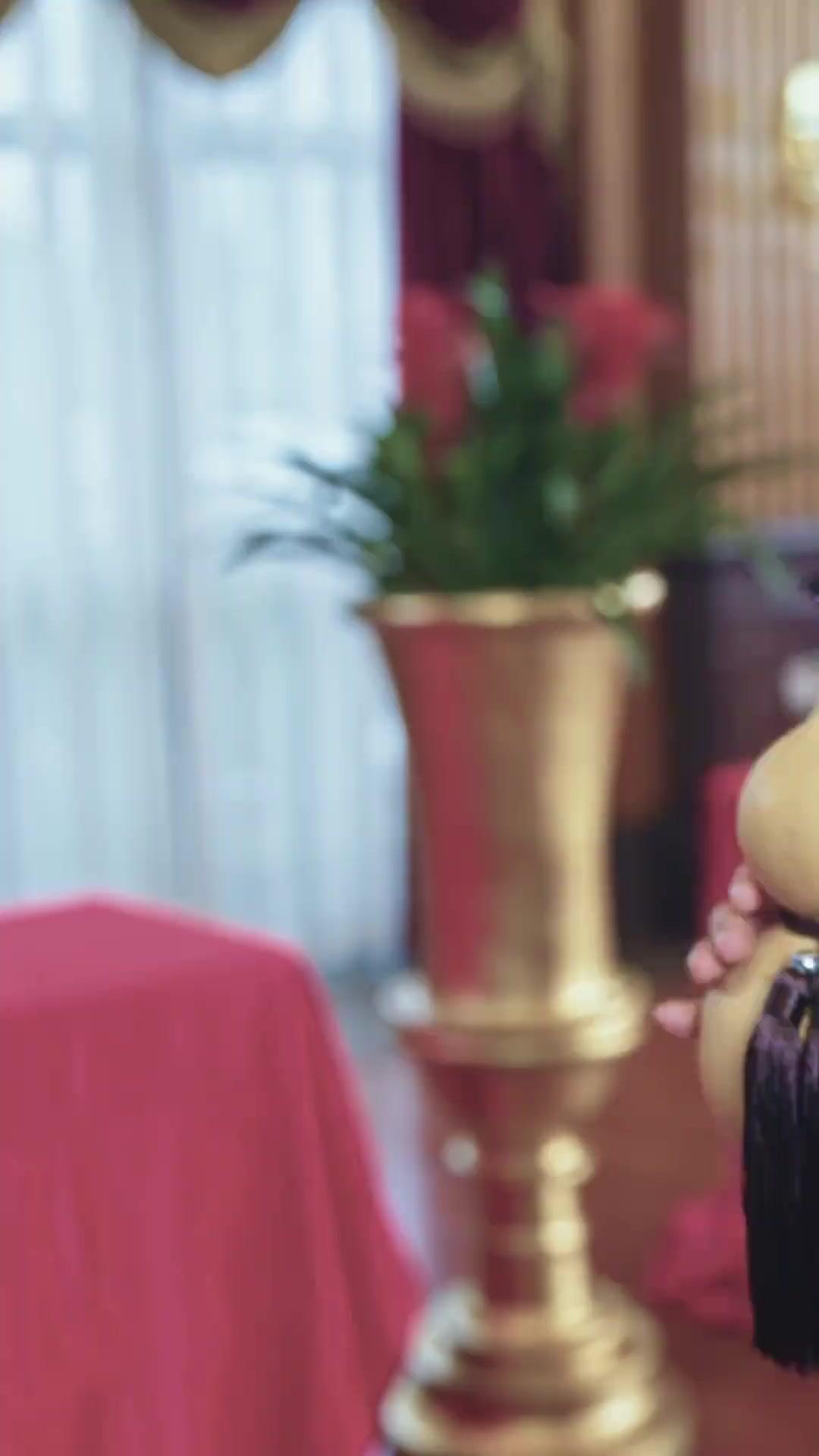 The environment itself is a character. Red drapes, heavy and luxurious, frame every interaction like stage curtains—this is performance, yes, but also ritual. The chandelier above casts prismatic flares across faces, turning moments of doubt into glittering crises. Background details matter: the half-empty wine glasses on side tables, the servant who pauses mid-step when the gourd is raised, the way the wooden floorboards groan under collective anticipation. Sound design amplifies the unease—the distant murmur of guests fades when Lin Xiao speaks, replaced by the soft *shush* of her sleeves brushing against the gourd’s surface. Even the lighting shifts: warmer when Lin Xiao is centered, cooler when Su Mei interjects, as if the room itself aligns with emotional gravity. And let’s not overlook Yao Li, the woman in the black coat with ruffled cuffs and tied sleeves—her presence is minimal but seismic. She doesn’t argue; she *annotates*. When she finally steps forward, her voice is low, clipped, devoid of flourish. She cites a date, a name, a forgotten clause in the family registry. Her knowledge isn’t showy; it’s archival. She represents the institutional memory that Lin Xiao must either reconcile with or override. Her crossed arms aren’t hostility—they’re preservation. She’s the keeper of the ledger, and Lin Xiao is rewriting the entries.