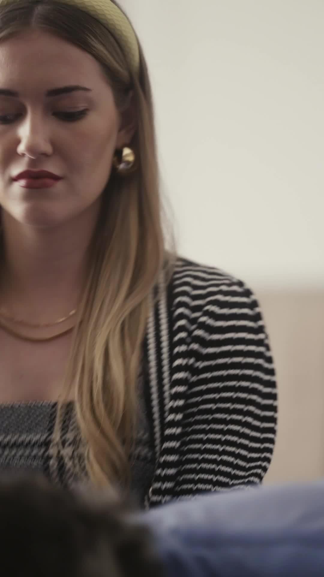 Let’s talk about the quiet detonation that happens in the third minute of this clip—when Kate, with her honey-blonde waves pinned by a pale yellow headband and wearing a houndstooth dress layered under a striped cardigan, snaps at John McGuire not as a subordinate, but as someone who *knows* she’s being underestimated. That moment isn’t just anger; it’s the first crack in a carefully constructed facade. She doesn’t raise her voice—she narrows her eyes, tilts her chin, and says, ‘Go with me. Janitor.’ The word ‘Janitor’ hangs in the air like smoke after a gunshot. It’s not an insult. It’s a test. And John McGuire, holding a broom like it’s a scepter, doesn’t flinch. He looks back—not with deference, but with the weary amusement of a man who’s seen too many power plays fail because they’re built on sand instead of steel.
