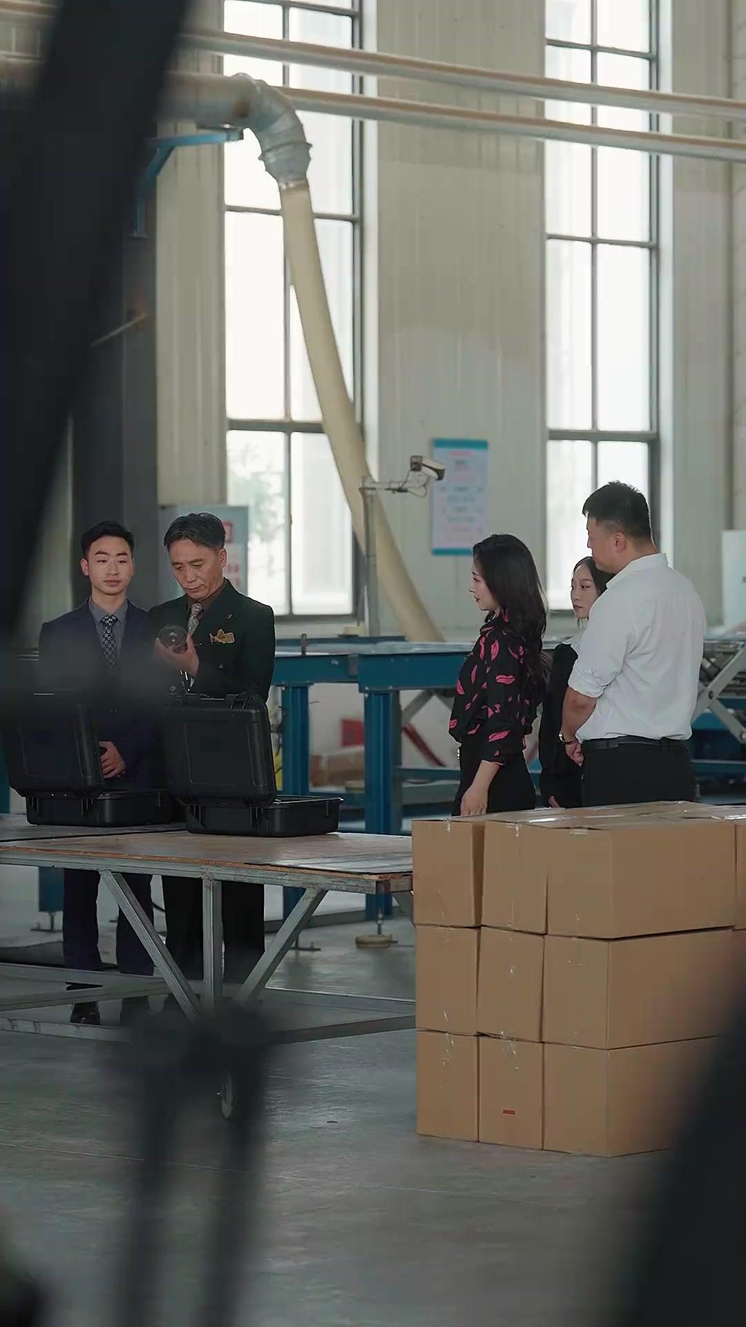 What follows is a masterclass in nonverbal storytelling. Ling Xiao doesn’t raise her voice. She doesn’t point. She simply places the second gear beside the first, aligning them with surgical precision. The contrast is undeniable: one gleams with newness, the other bears the faintest patina of use—or perhaps, tampering. Zhou Wei leans in, his posture shifting from confident to defensive. He reaches for the case, but Ling Xiao’s hand rests lightly on its edge. Not blocking, just *being there*. A silent assertion of control. Meanwhile, two workers nearby exchange a glance—one older, one younger—before the elder murmurs something low and urgent. The younger worker nods, then discreetly slides a cardboard box toward the group. It’s unmarked, sealed with plain tape. No one acknowledges it directly, but Yi Teng’s eyes narrow. He sees everything. His glasses reflect the overhead lights, obscuring his pupils, making his gaze unreadable. Yet his fingers twitch against his thigh. He’s calculating risk, consequence, timing. Is this the moment to expose the flaw? Or to let the deception fester, gathering evidence, watching who flinches next?